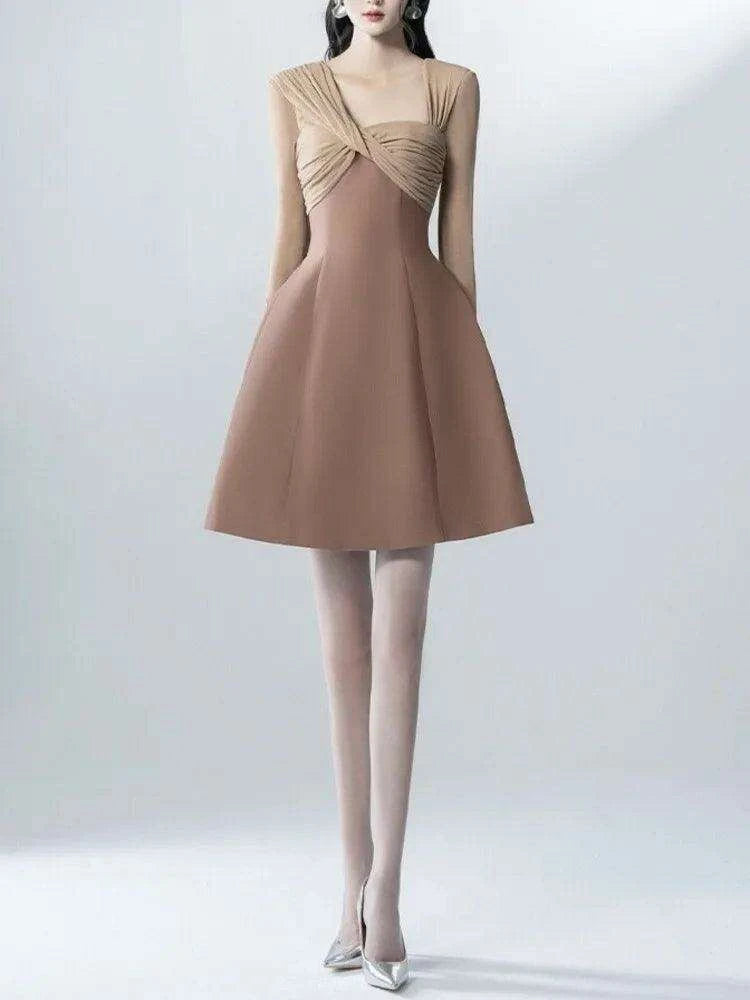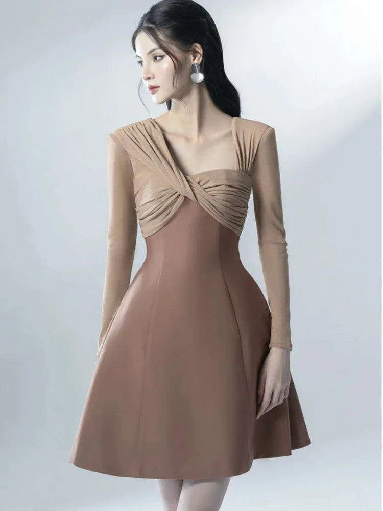 Asymmetrical Patchwork Long Sleeve Square Neck Dress for Women