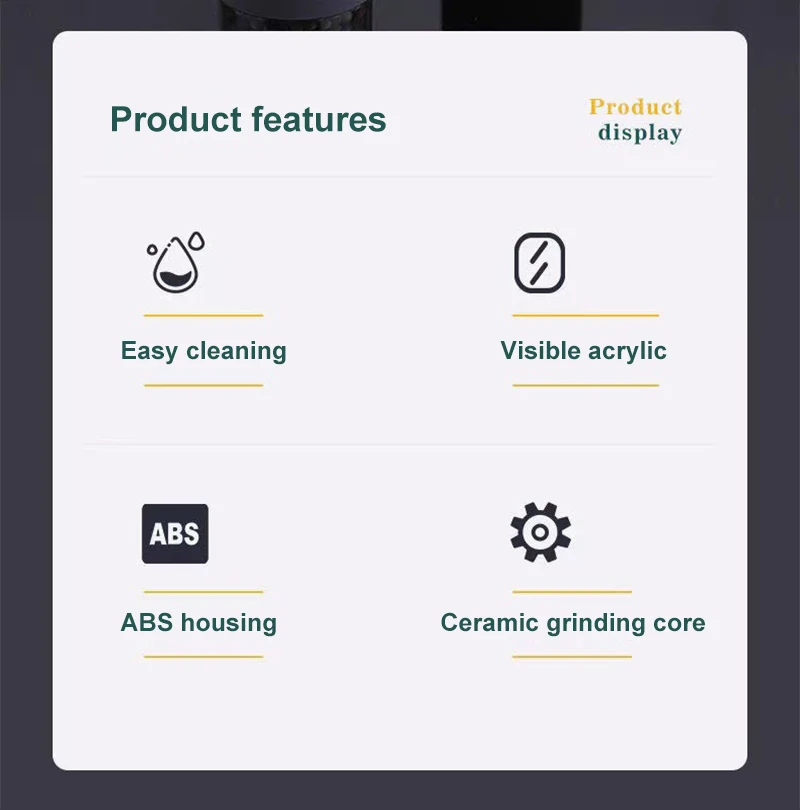 Apparence exquise : moulin à poivre avec un design exquis et un mécanisme de broyage en métal.