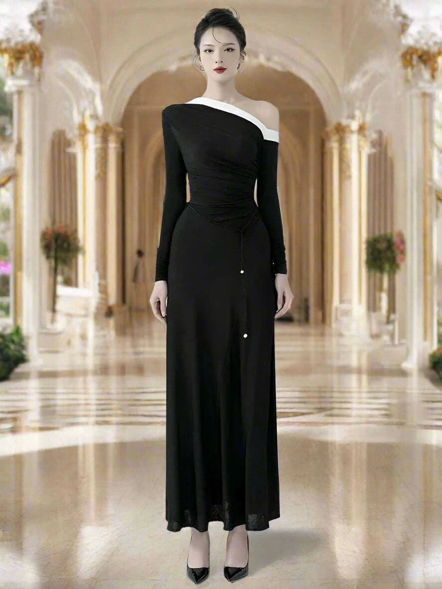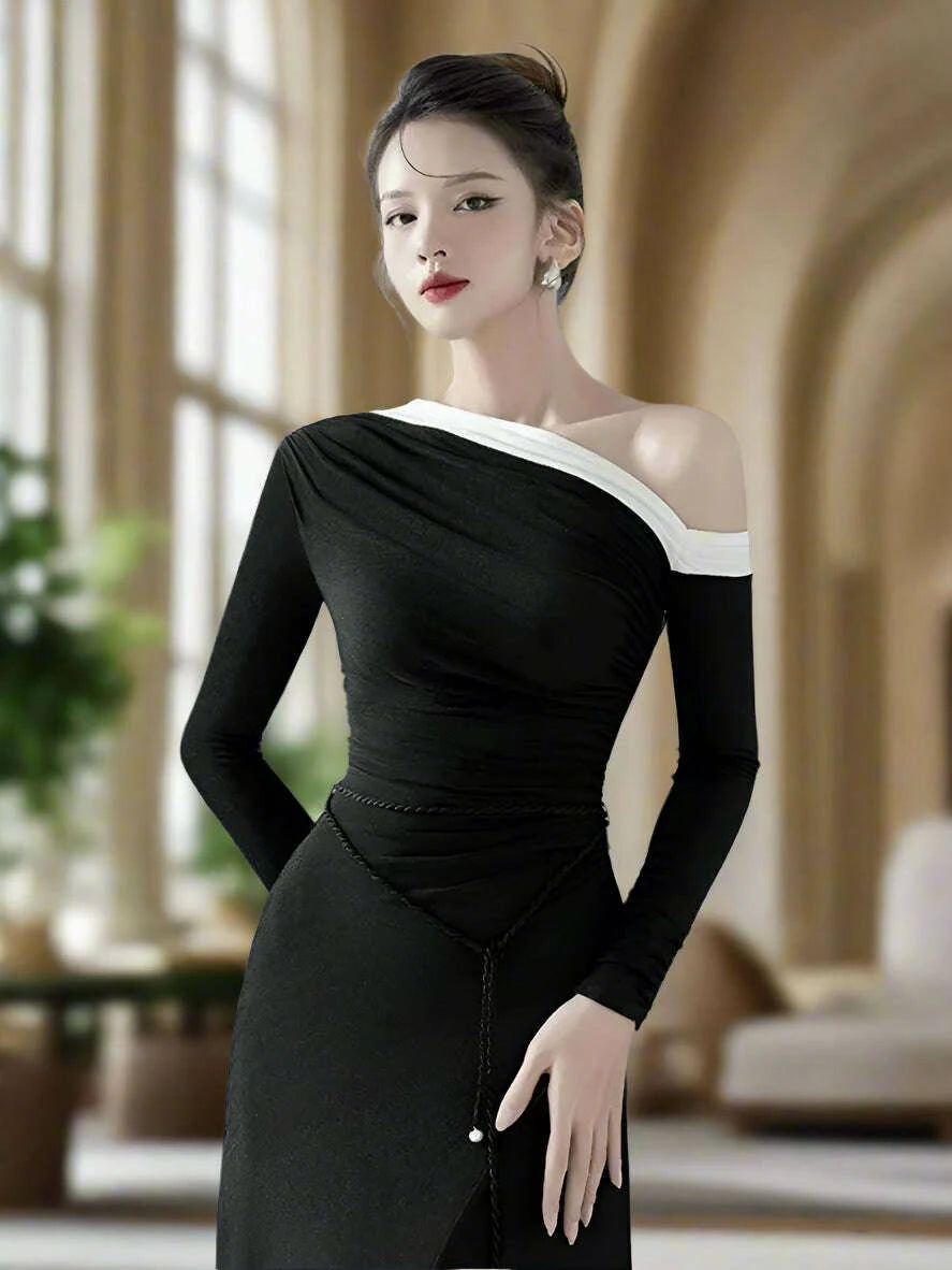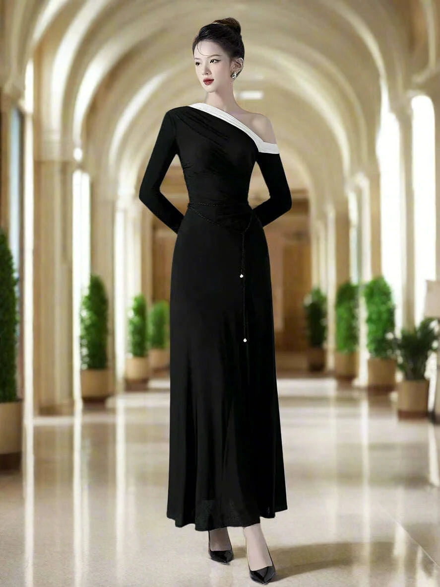 - Diagonal Collar: This eye-catching feature elevates the dress, providing a chic and modern silhouette that is hard to ignore.