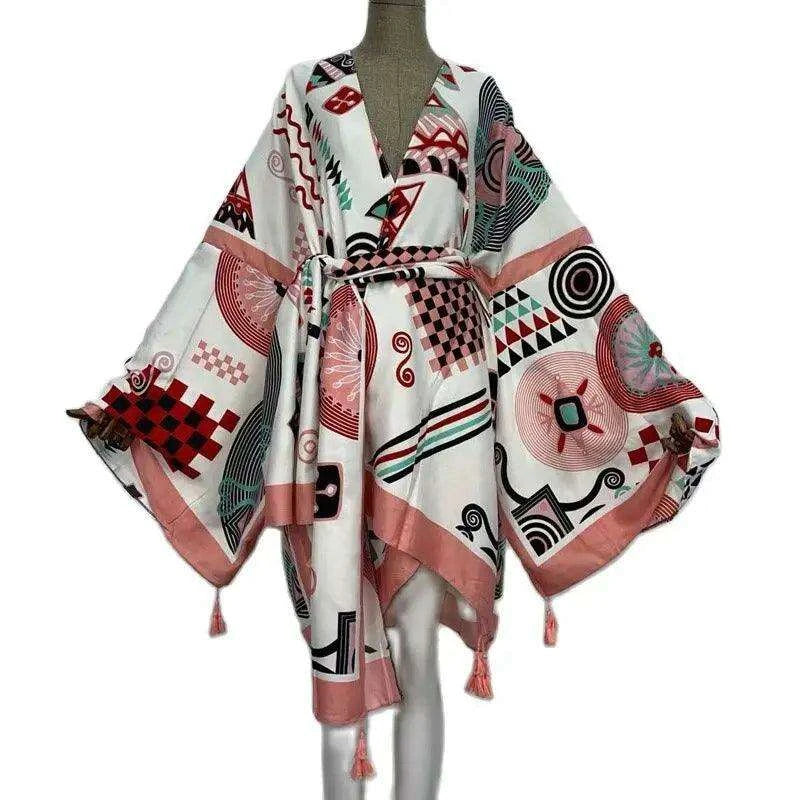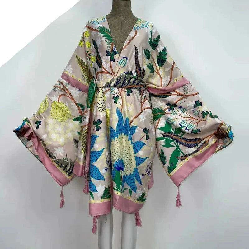 Robe en soie bohème : Robe kimono pour femme d'automne africaine