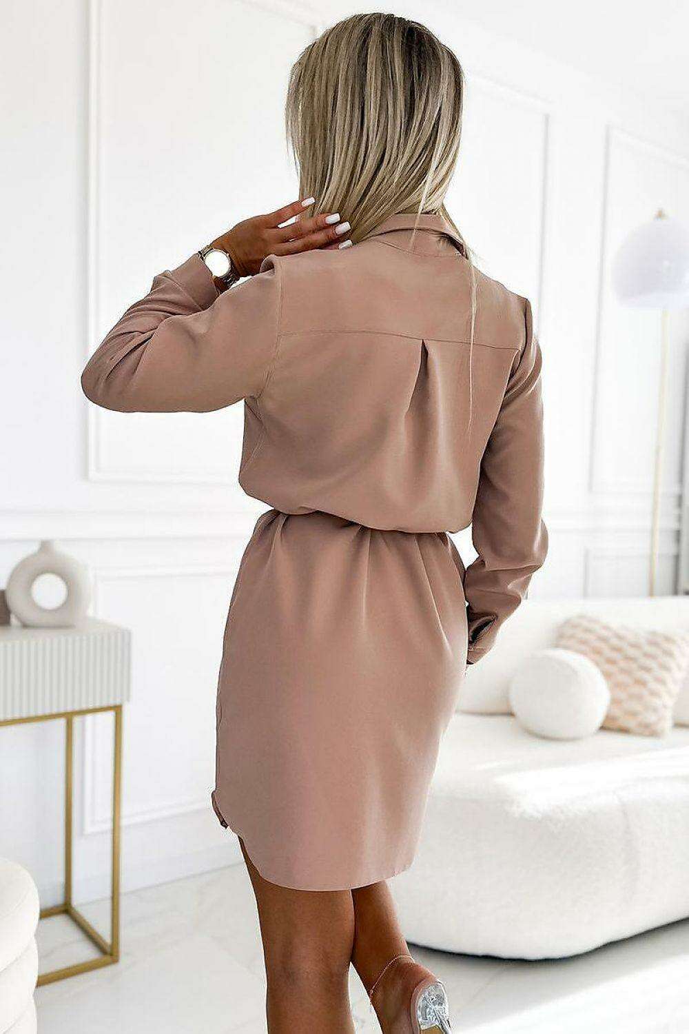 Beige Pocketed Shirt Dress - Chic European Elegance by Numoco
