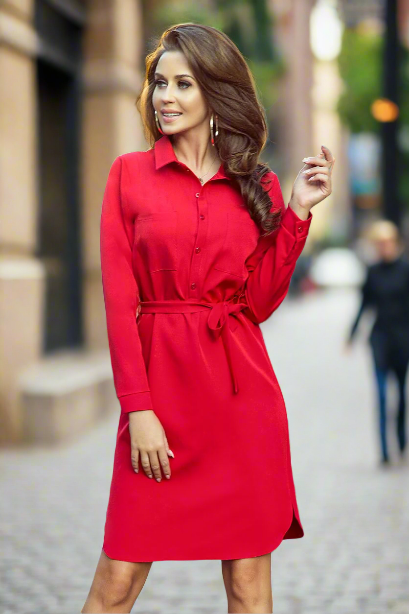 Step into sophistication with the Beige Pocketed Shirt Dress from Numoco, a perfect blend of comfort, style, and practicality. This stunning shirt dress showcases a refined European design that elevates any wardrobe.