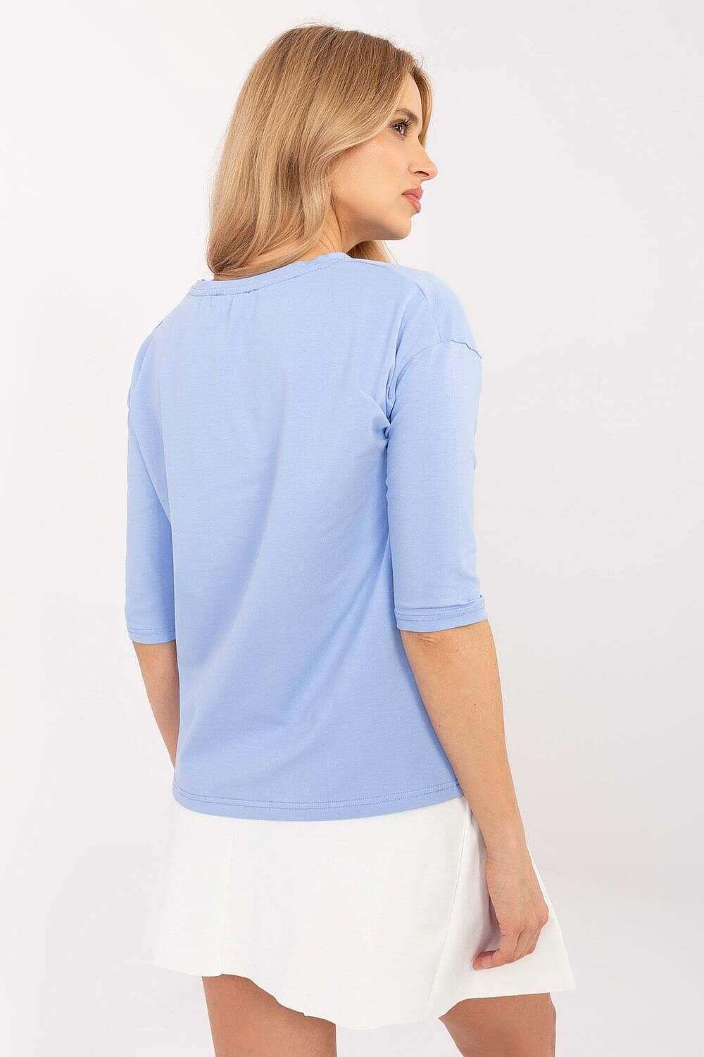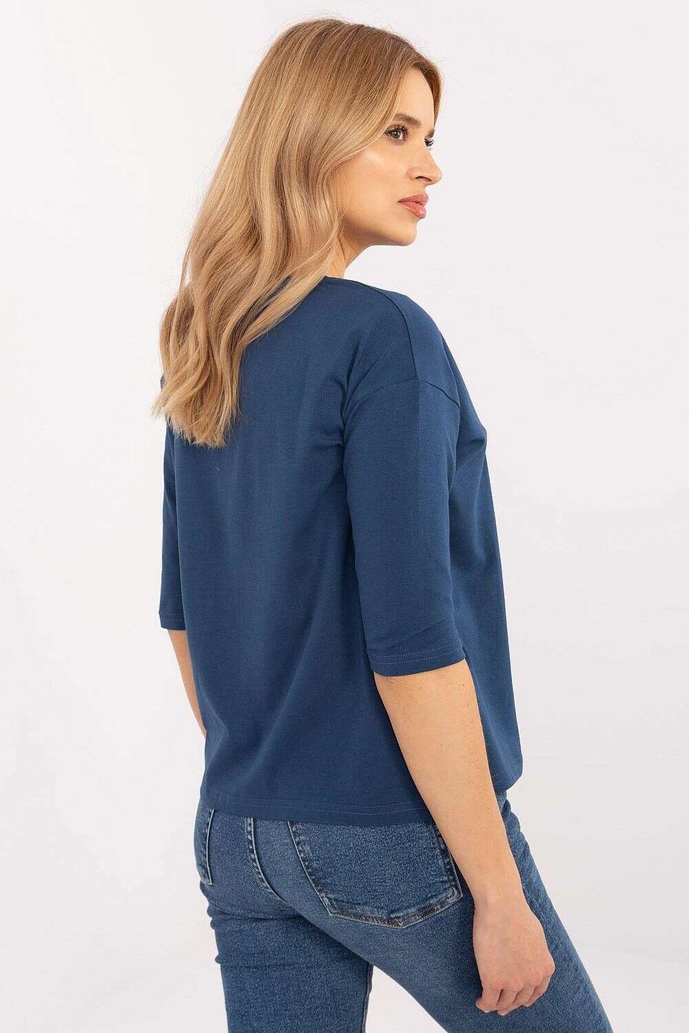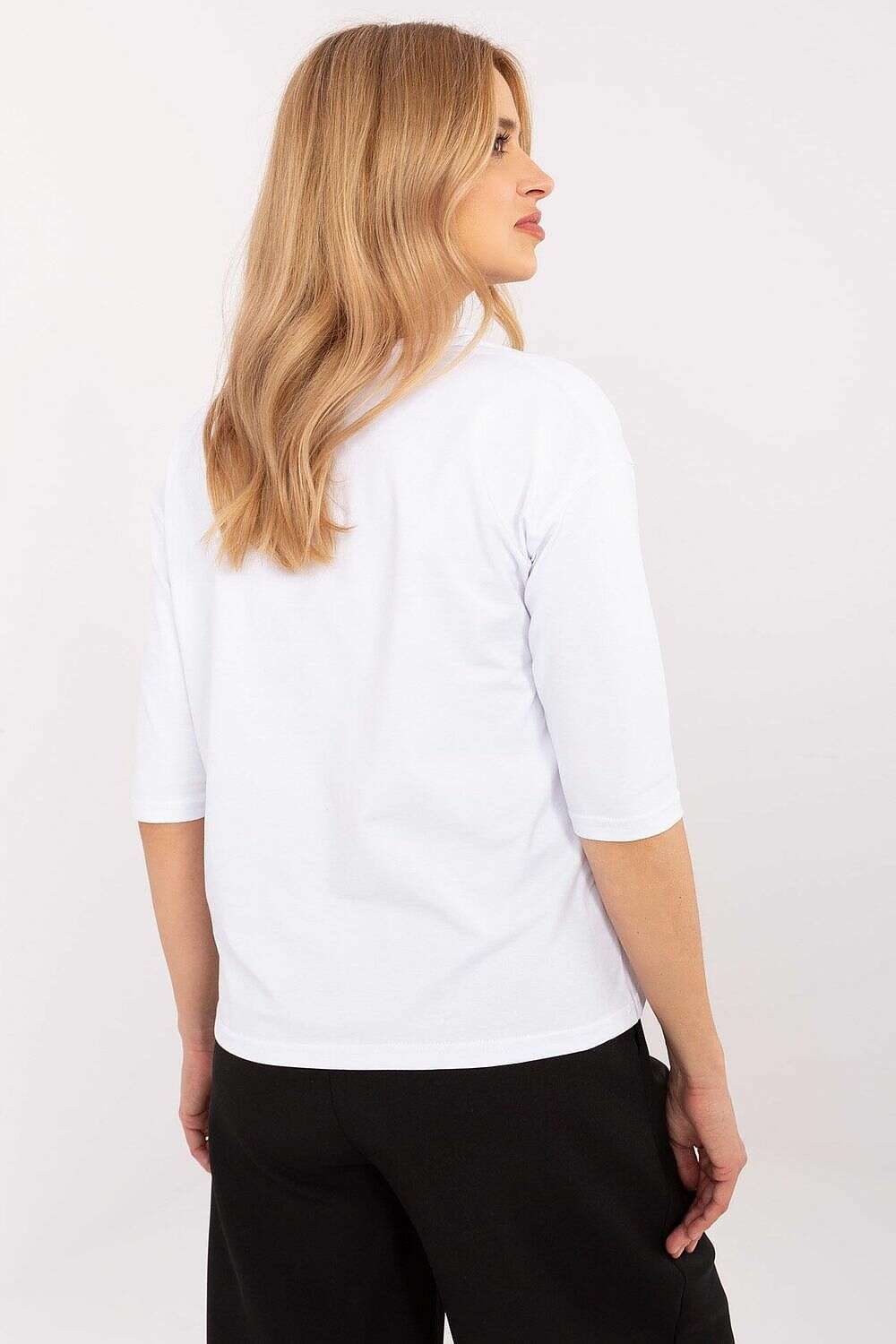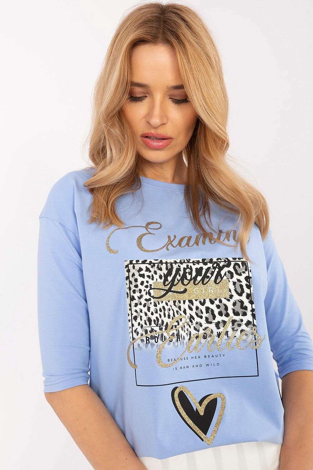 Stylish everyday blouse of standard length, made of soft cotton with elastane for comfort and perfect fit. The model with 3/4 sleeves and a round neckline is a universal proposal for any occasion. The dominant pattern combines a print with an animal motif on the front, giving the blouse a fashionable and distinctive character. Excellent for casual stylizations, it goes well with both jeans, skirts, or elegant trousers.