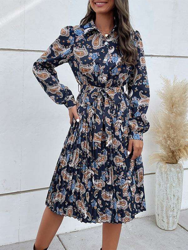 Bohemian Elegance Maxi Dress with Lapel and Button Accents for Women
