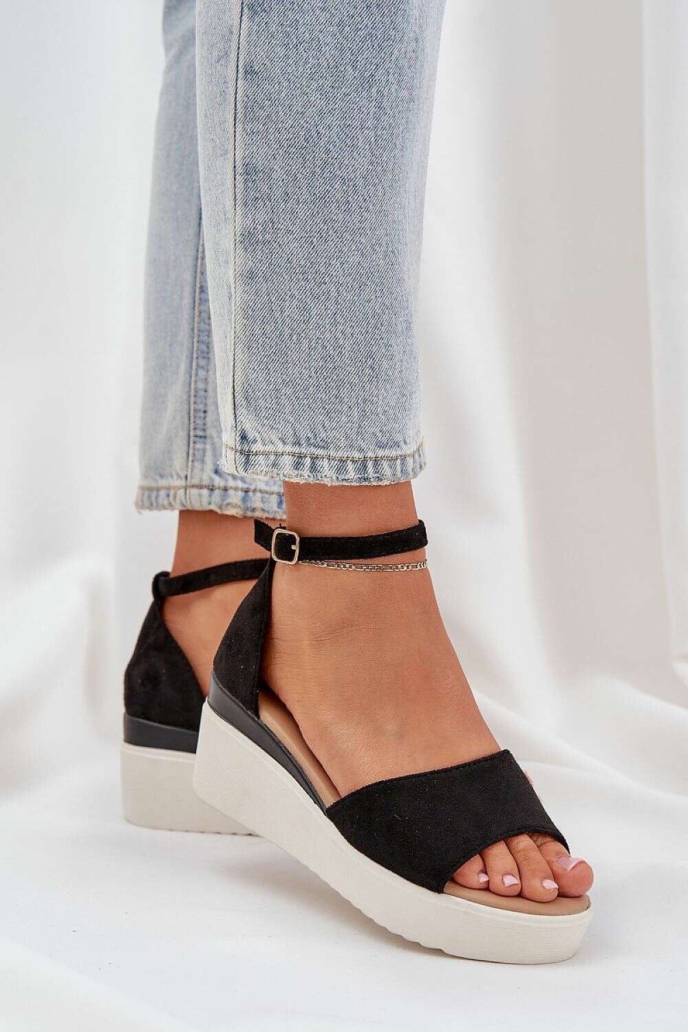 Eco suede sandals are a light and comfortable model that combines style with comfort. Set on a platform and a delicate wedge, they provide comfort and stability all day long. The adjustable strap with a buckle allows for a perfect fit to the foot, and the soft insole adds extra comfort. These sandals are an excellent choice for warm days!