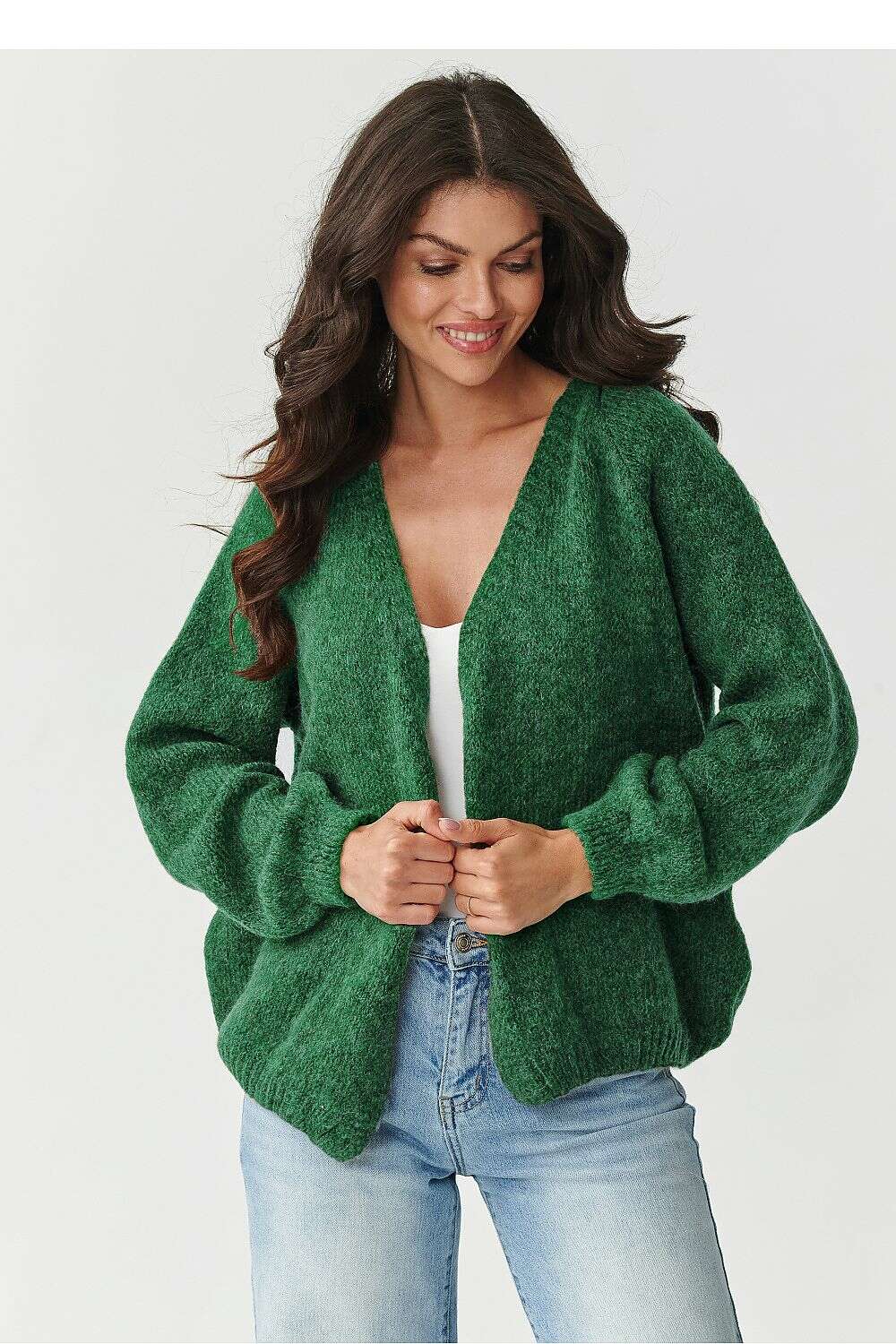 Short women's cardigan made of luxurious blend of kid mohair, wool, polyamide and acrylic will wrap you in pleasant warmth on cooler days. Incredibly soft, light and pleasant to the touch, yet breathable. Thanks to the classic open-front cut, it will be perfect for casual and elegant stylings paired with a top, turtleneck or shirt. The loose fit with slightly puffed sleeves provides comfort and freedom of movement, while the natural shine of the fibers adds a touch of elegance. Excellent as a cardigan for the office, for a walk, shopping or evening out. It pairs well with jeans, dress, leggings or skirt. An ideal choice for autumn, winter and spring, it will also work as a shawl on cooler summer evenings.