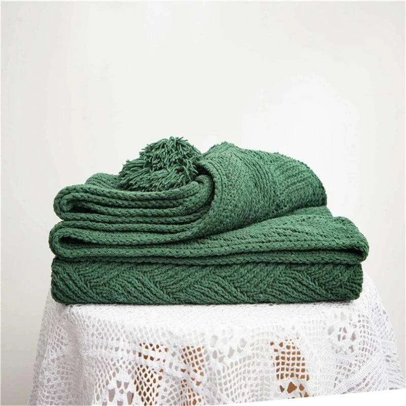 Elegant Chenille Knit Throw Blanket with Adorable Pompoms - Luxurious Warmth for Your Sofa and Bedding