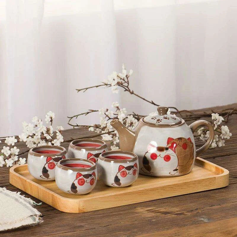 Charming Lucky Cat Ceramic Tea Set - Perfect Gift for Tea Enthusiasts