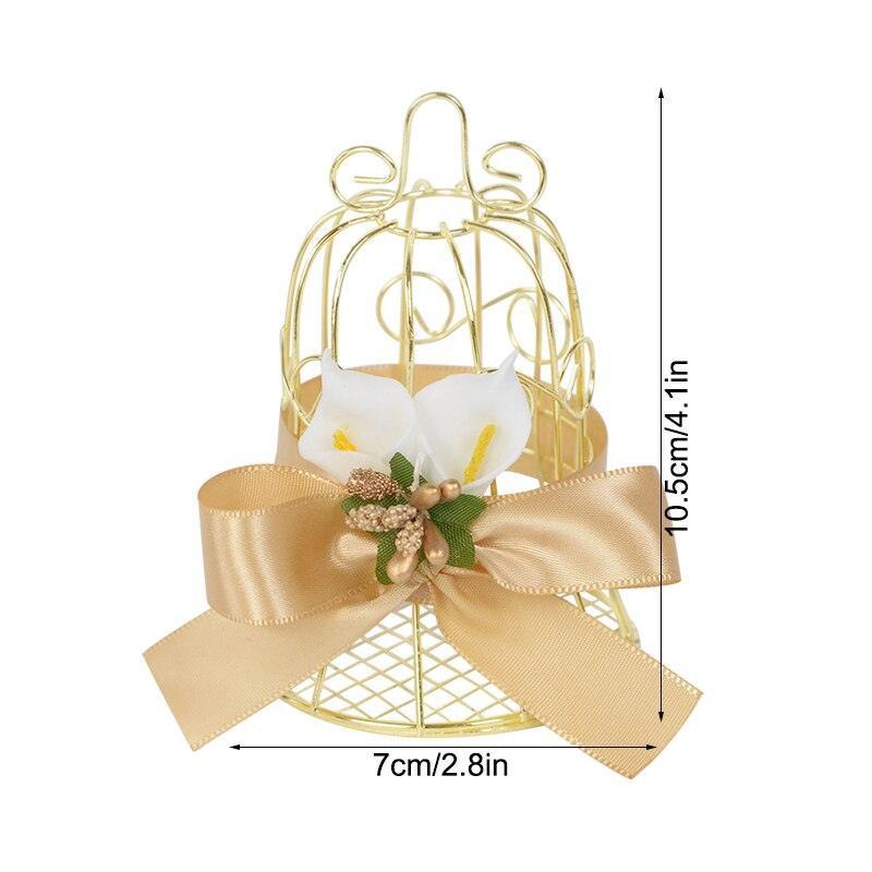 Carefully crafted, these mini gold birdcage candy boxes not only serve as delightful favors but also double as stunning décor additions that will captivate your audience. Designed for versatility, they can hold candies or small treats, making them both functional and decorative. Elevate the ambiance of your event and leave a lasting impression with these charming and versatile treat boxes. Make your celebrations truly memorable with our Charming Mini Gold Birdcage Treat Boxes!