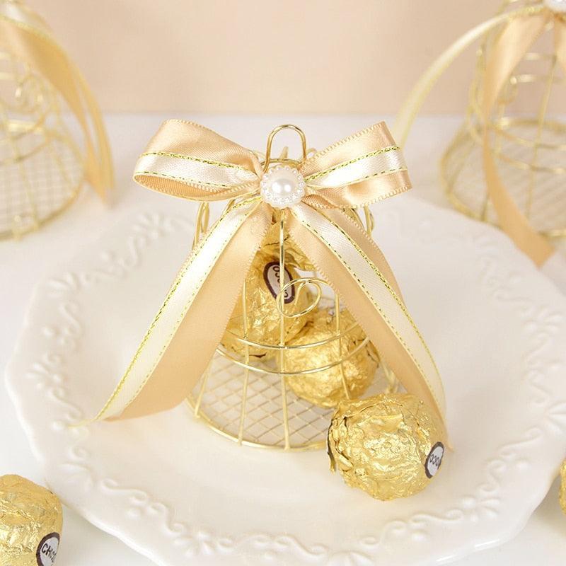 Charming Mini Gold Birdcage Treat Boxes - Perfect Favors for Elegant Celebrations