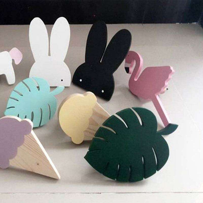 Charming Nordic Wall Hooks for Kids - Cute Rabbit, Cactus, Bow, and Ice Cream Designs