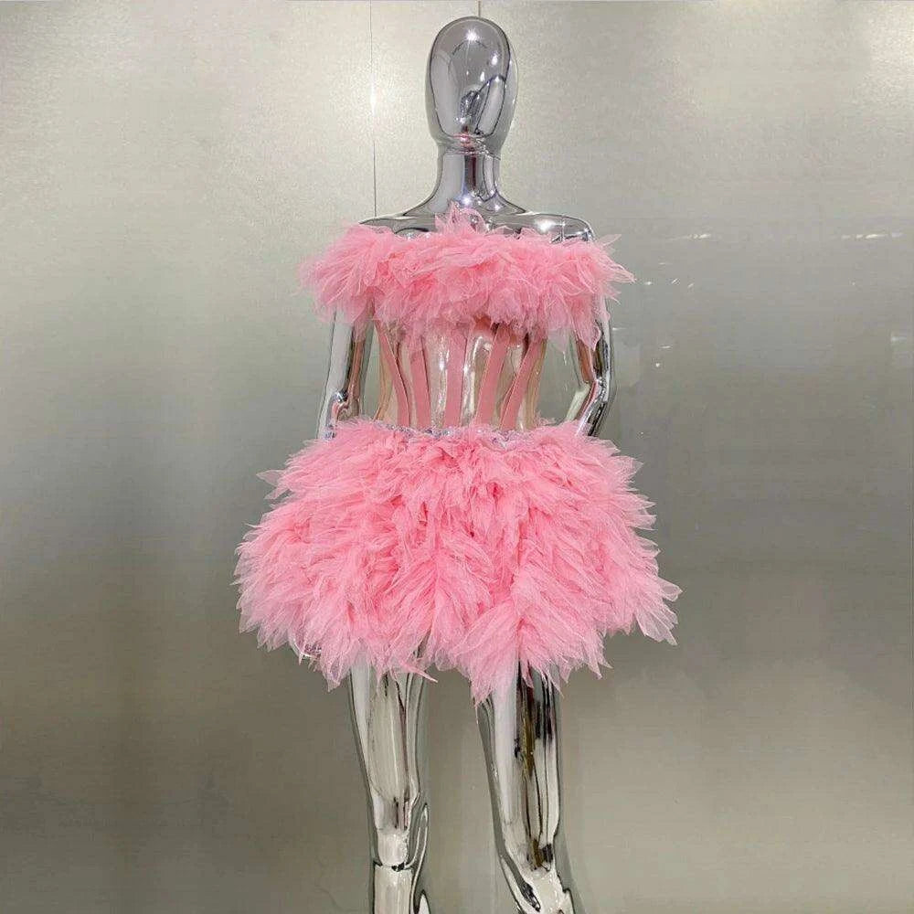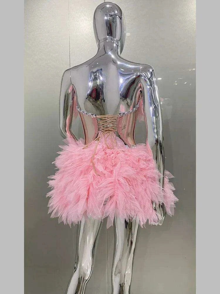 Charming Pink Lace-Up Mini Dress - Perfect for Celebrations and Events