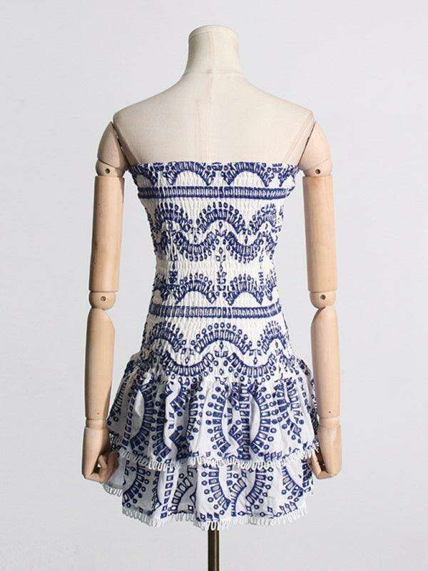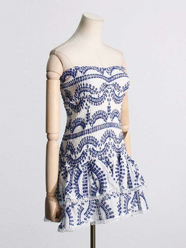 The intricate embroidery and unique hollow ruffle design set this dress apart, making it a sophisticated choice for any occasion. The ruffled stitching adds a touch of romance and refinement to your overall look, while the structured silhouette gracefully accentuates your figure.