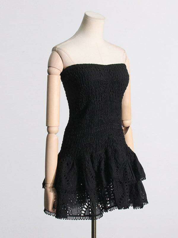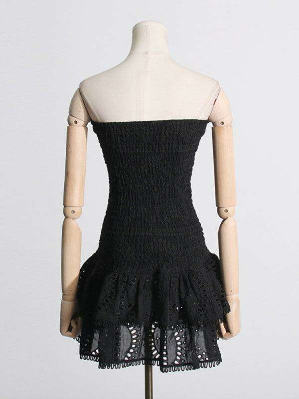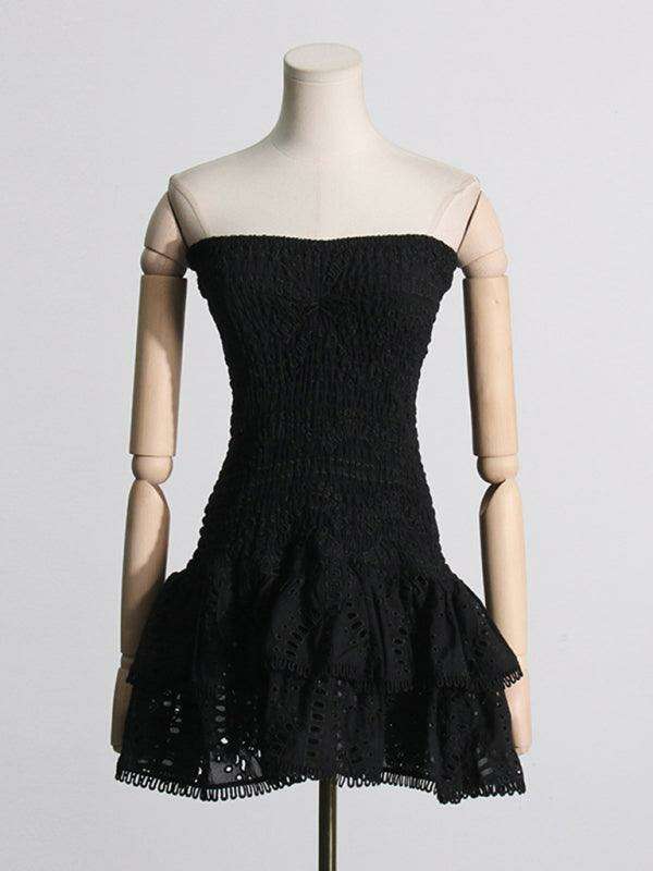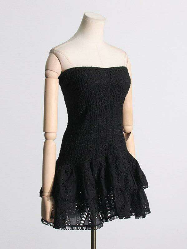 Step into a world of elegance and charm with our Romantic Ruffled Hollow Embroidery A-Line Dress. This stunning piece is designed to elevate your wardrobe, seamlessly blending sophistication with trendsetting style.