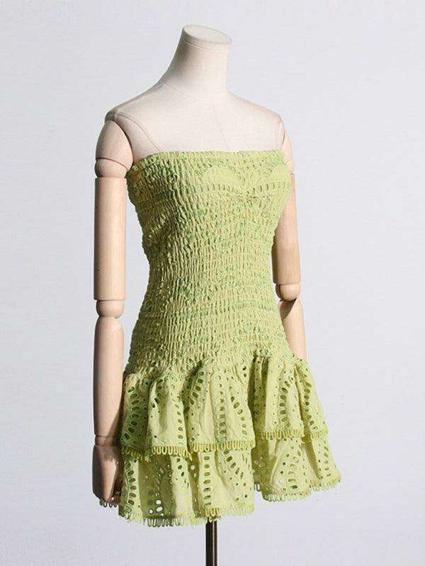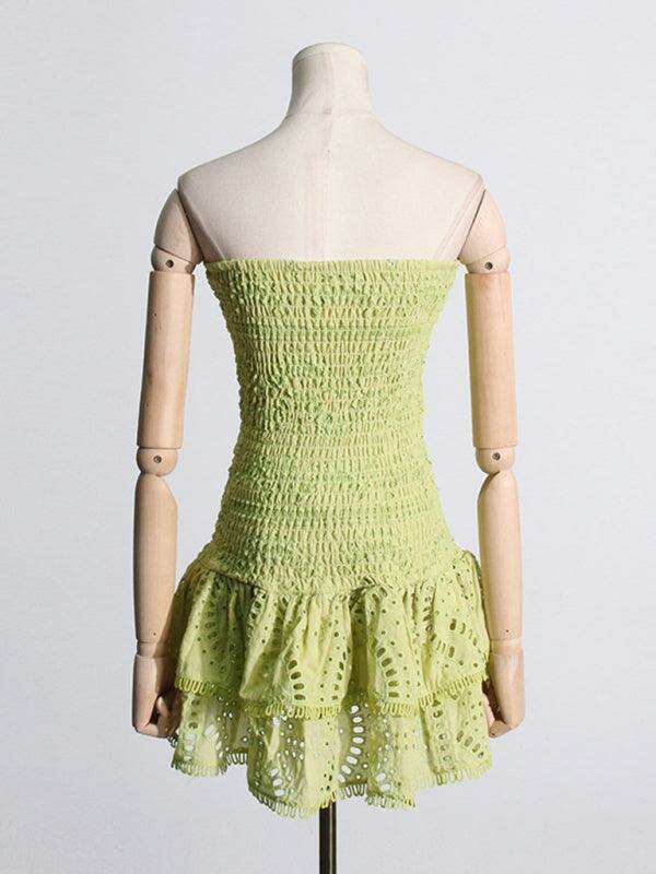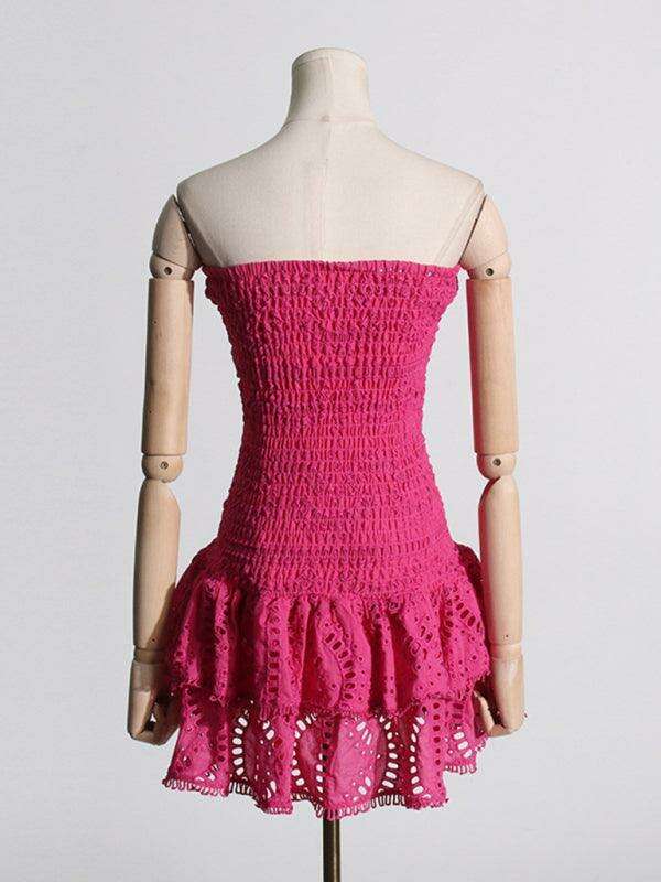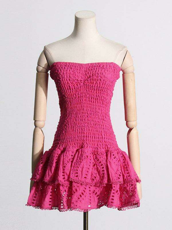 Romantic Ruffled Hollow Embroidery A-Line Dress
