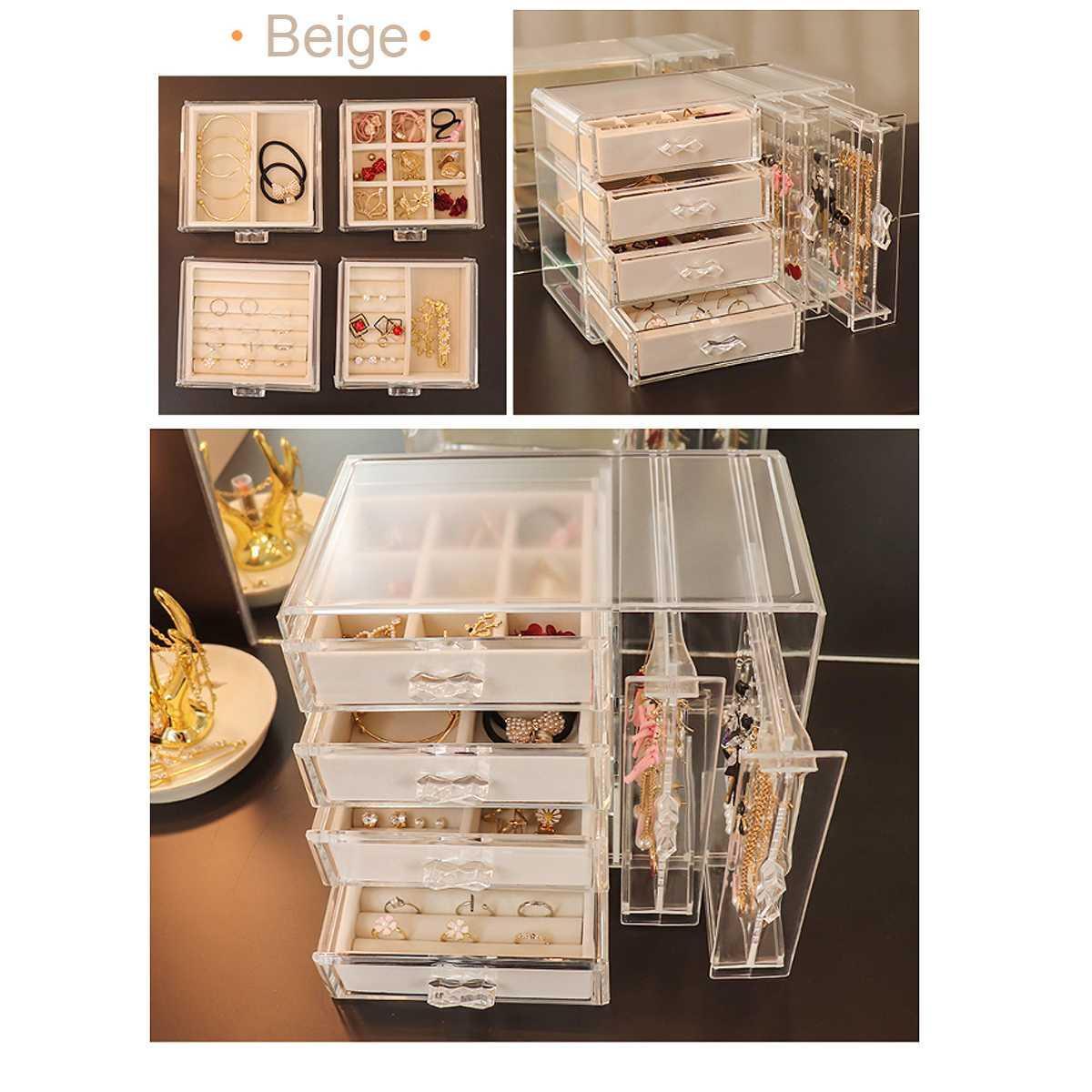 Boîte de rangement de bijoux en acrylique élégante avec tiroirs et présentoir de boucles d'oreilles