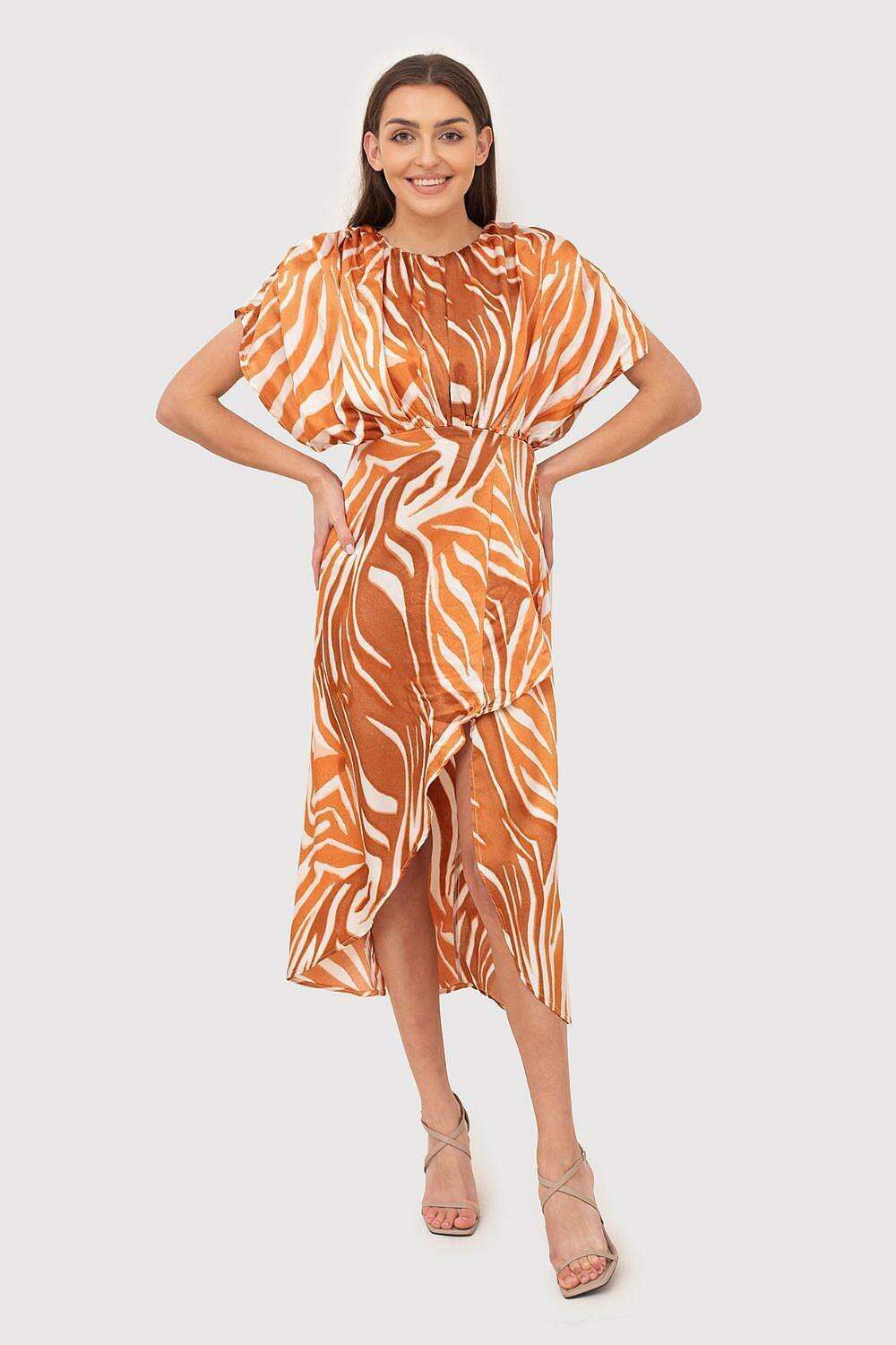 Step into sophistication with the Elegant Animal Print Midi Dress, a stunning piece that seamlessly blends elegance with contemporary style. This dress is a must-have for the fashion-forward individual looking to make a statement.