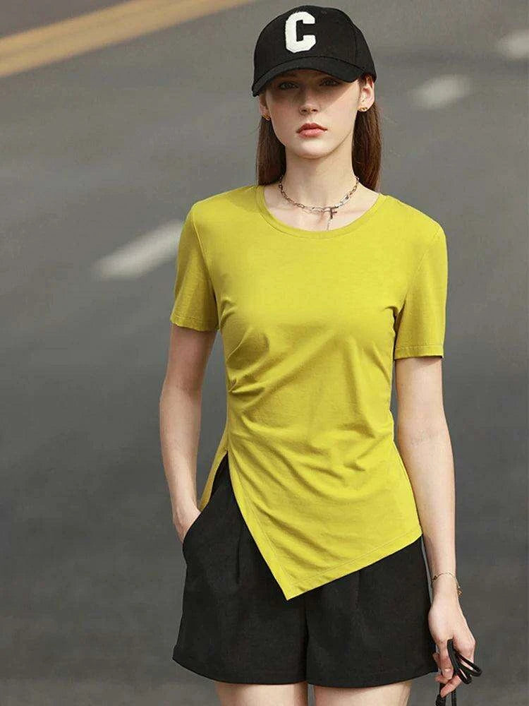 Women's Asymmetric Minimalist T-Shirt - Short Sleeve Solid Top for Spring/Summer