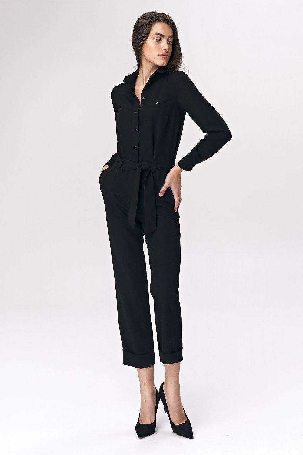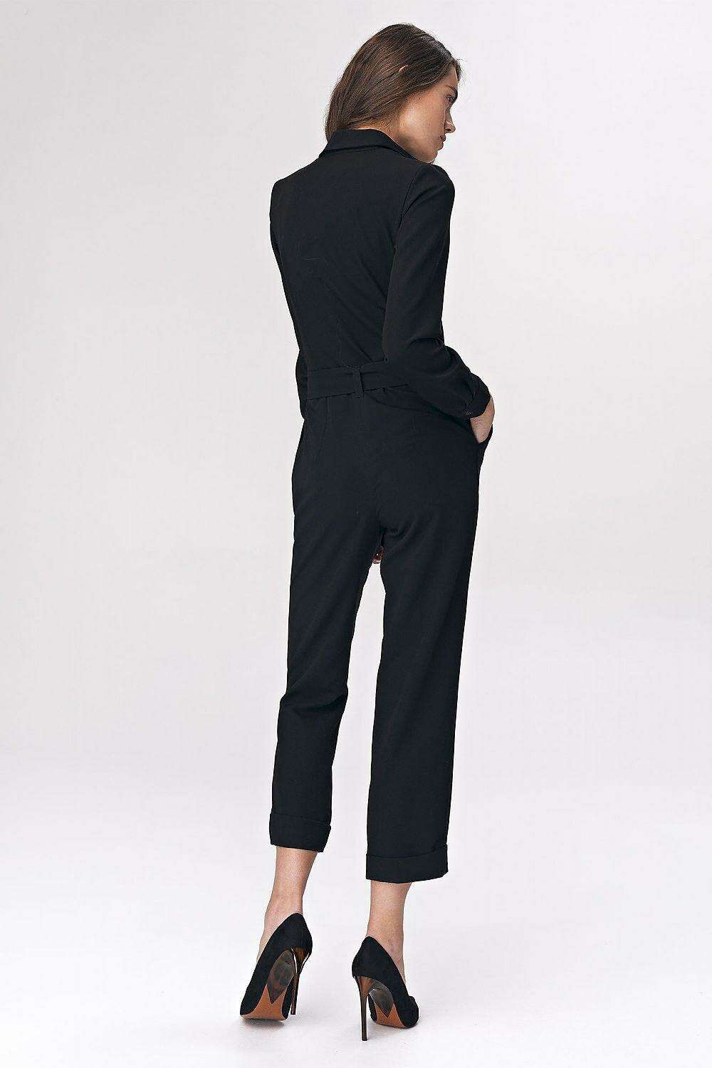 Chic Black Tailored Womens Suit With Waist Accent Detail