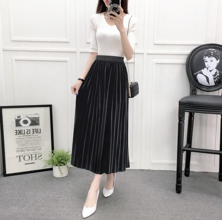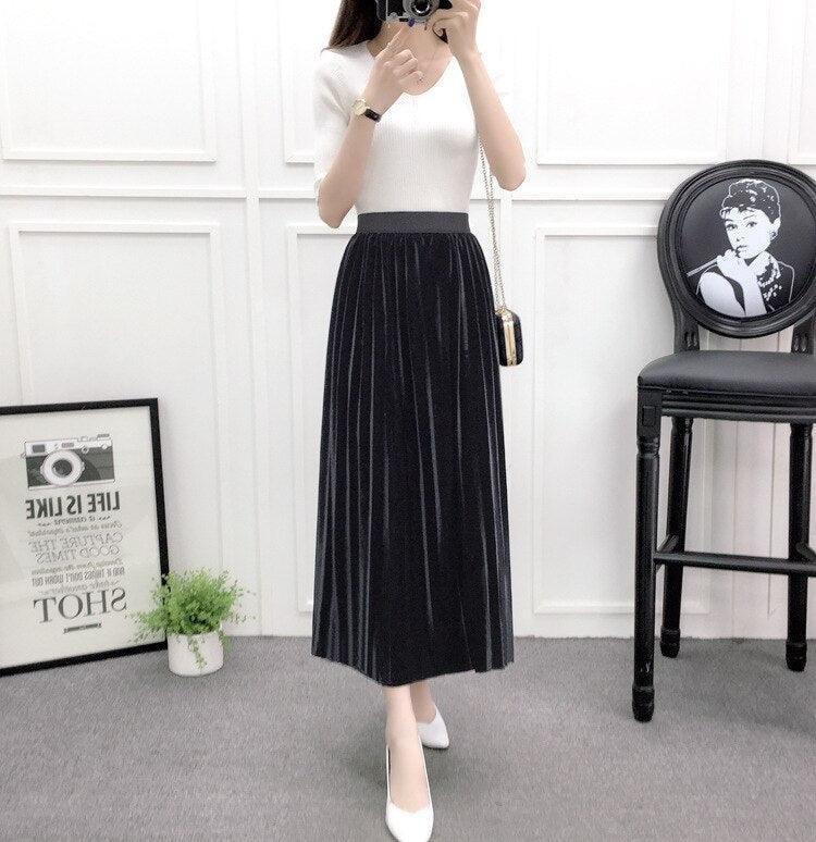 Jupe mi-longue vintage noire élégante pour femme - Style hivernal classique
