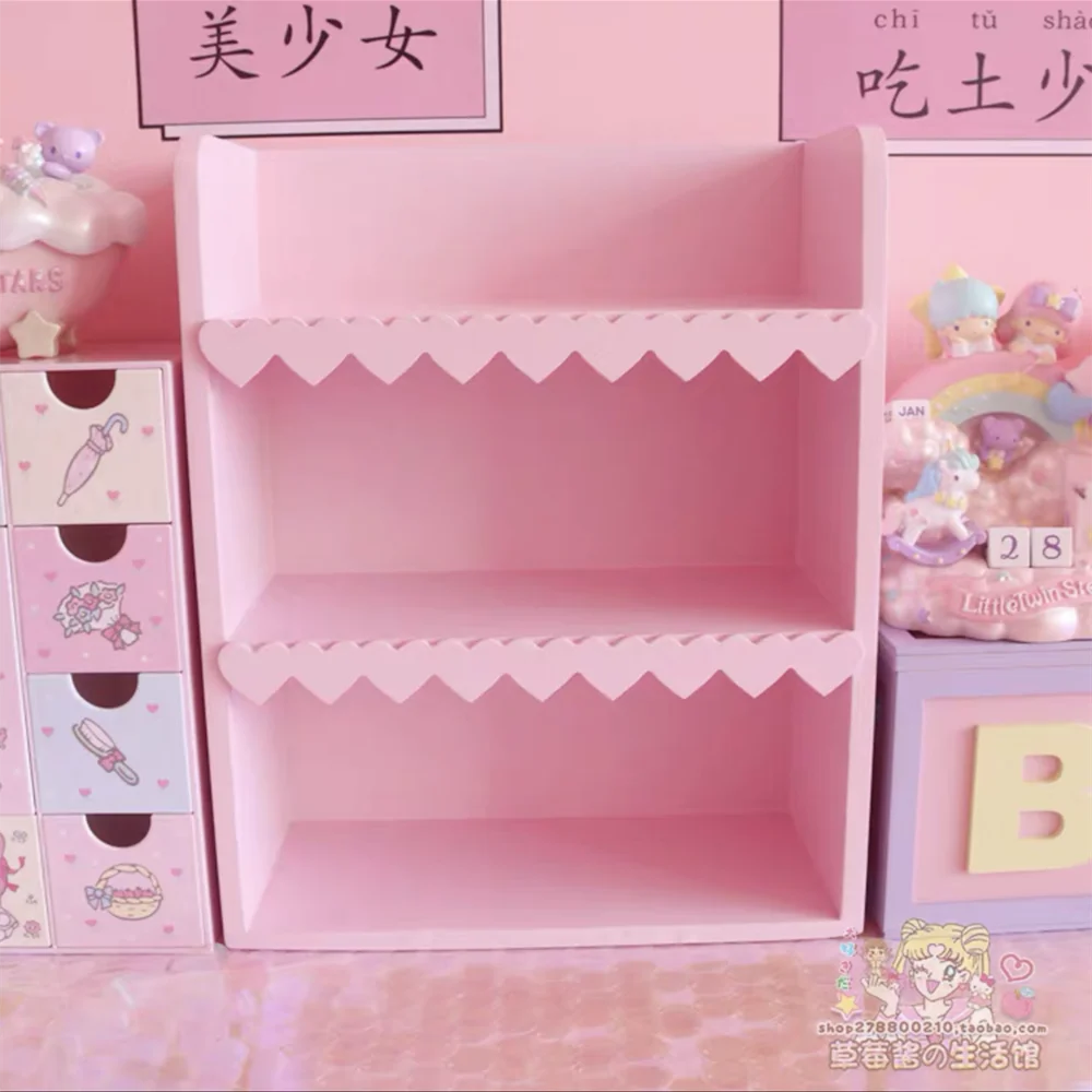 Charmante armoire en bois nordique rose | Organisateur de stockage de bureau à 3 étages