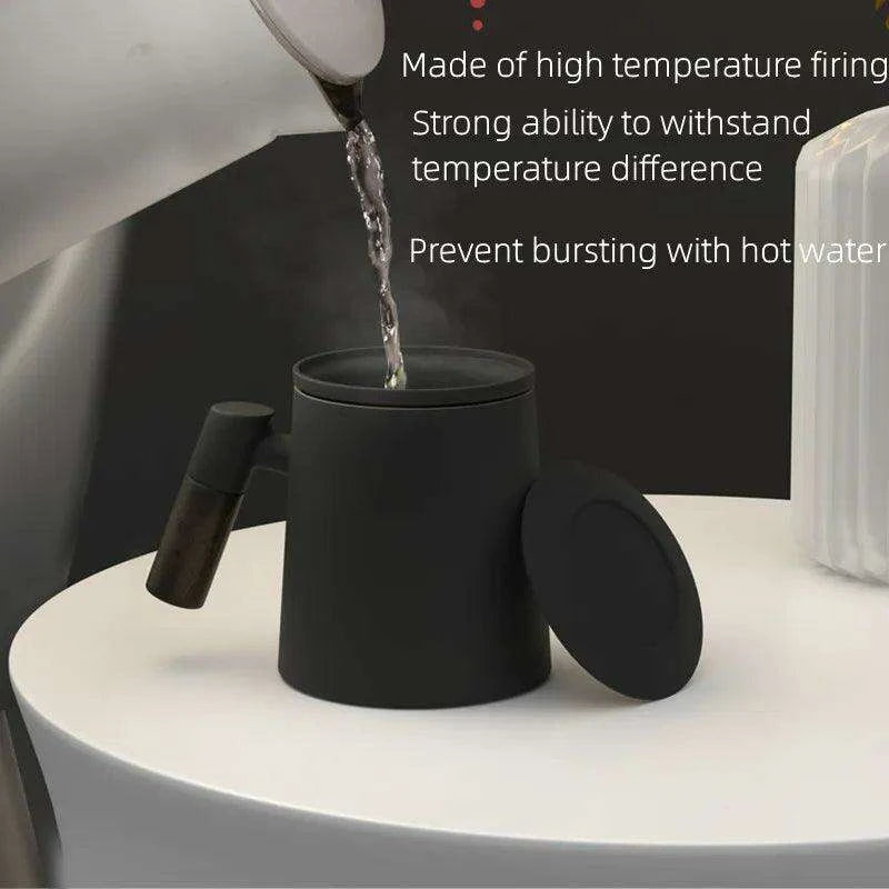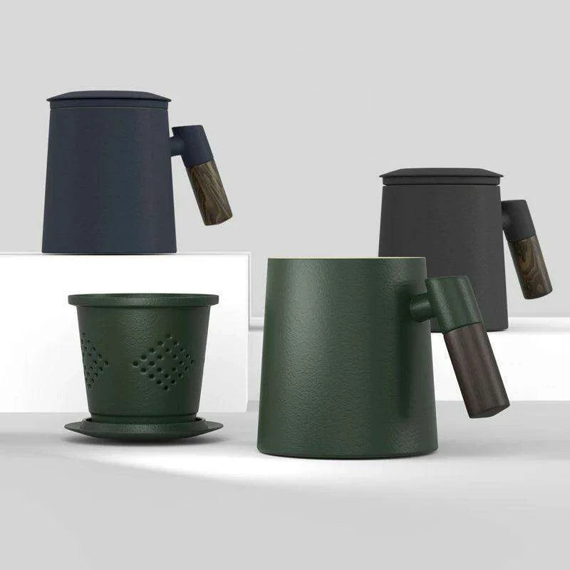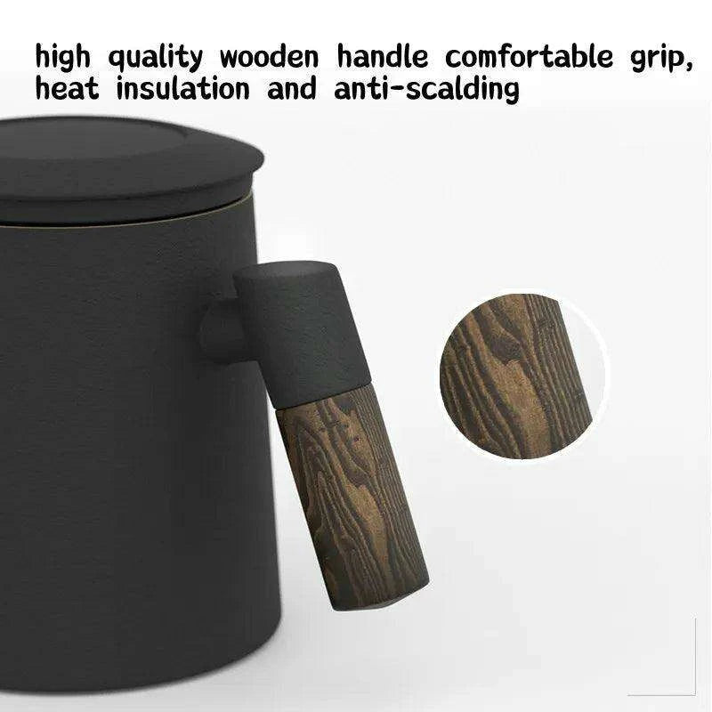 Chic Ceramic Tea Mug with Wooden Handle and Infuser Lid - Essential Drinkware for Every Occasion