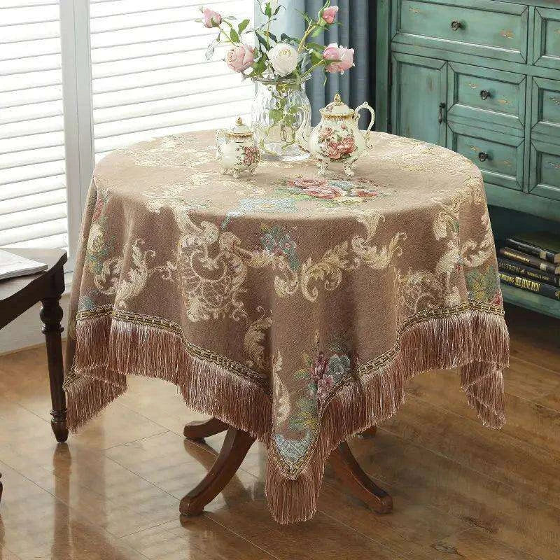 Elegant Chenille Tablecloth with Floral Tassels for a Refined Dining Experience