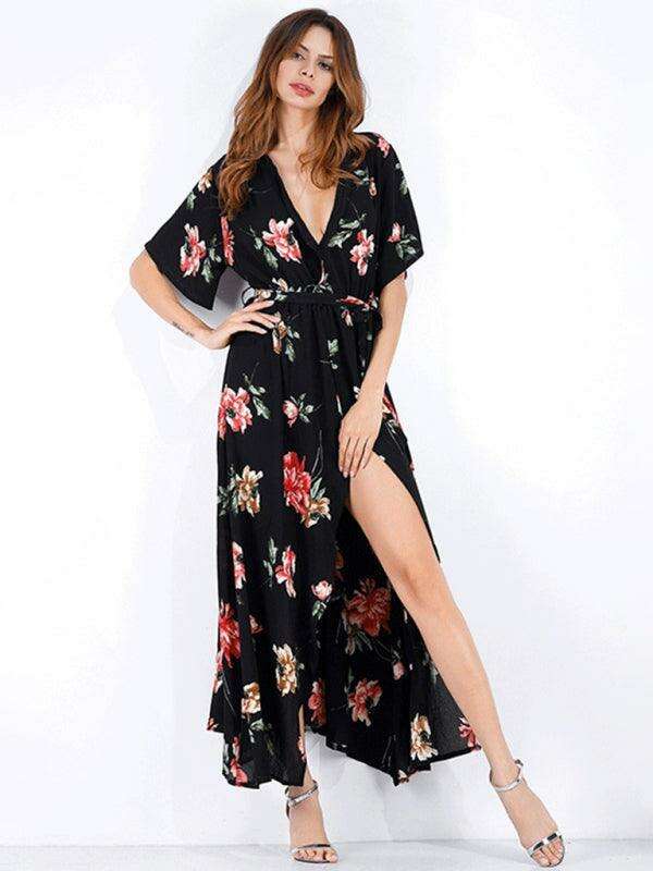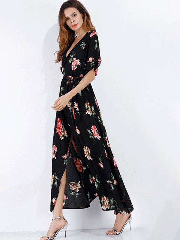 Chic Floral Escape V-Neck Vacation Dress - Ideal for Effortless Style
