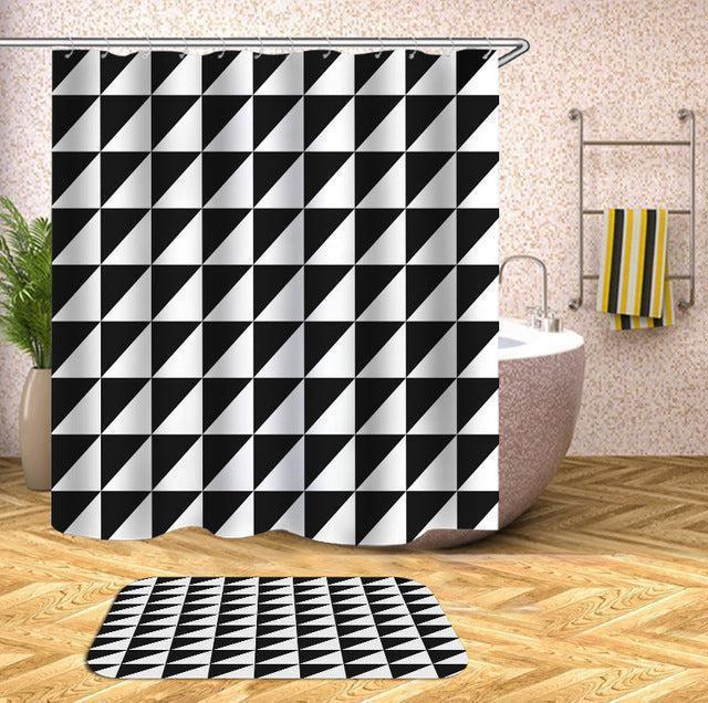 Chic Geometric Bathroom Shower Curtain Set with Stylish Hooks..