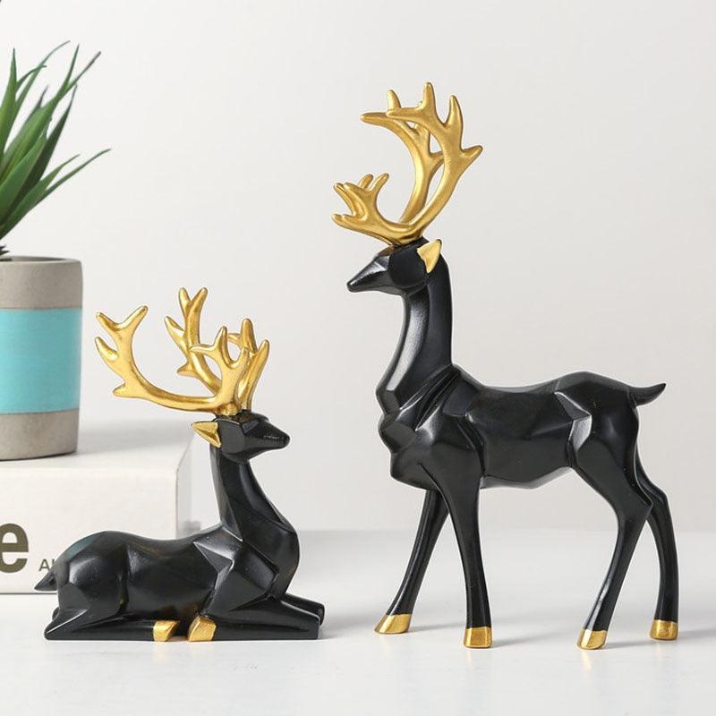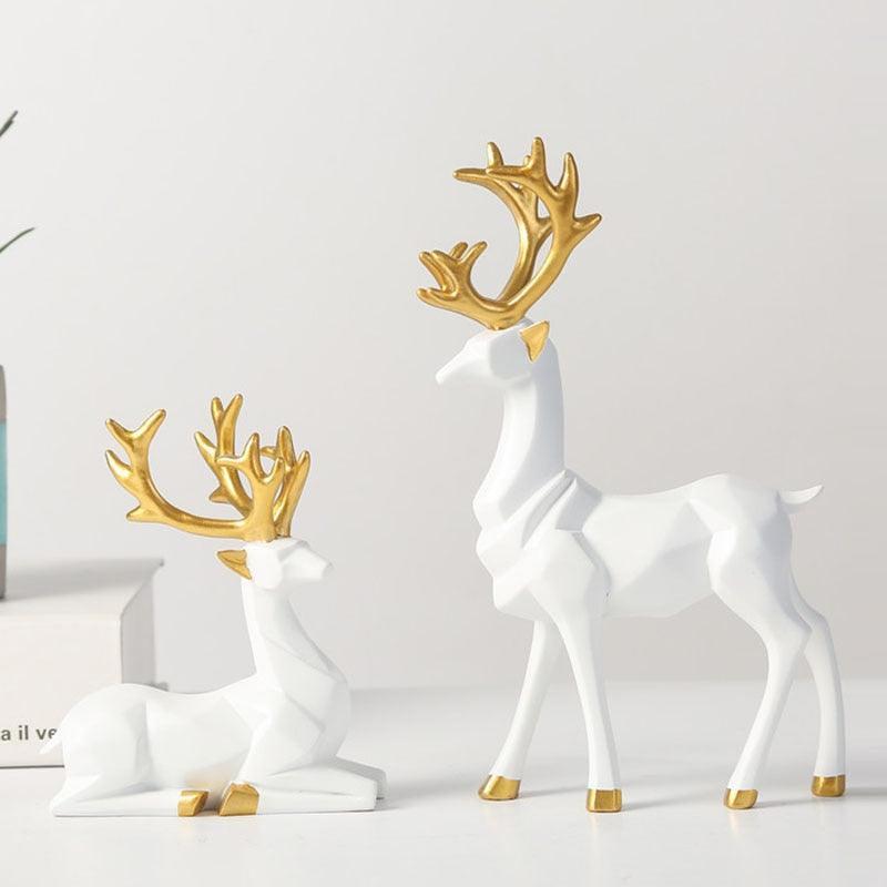 Choose the Elegant Golden Deer Couple Resin Sculpture for a delightful blend of charm and modern design, making it a must-have item for any chic home decor enthusiast.