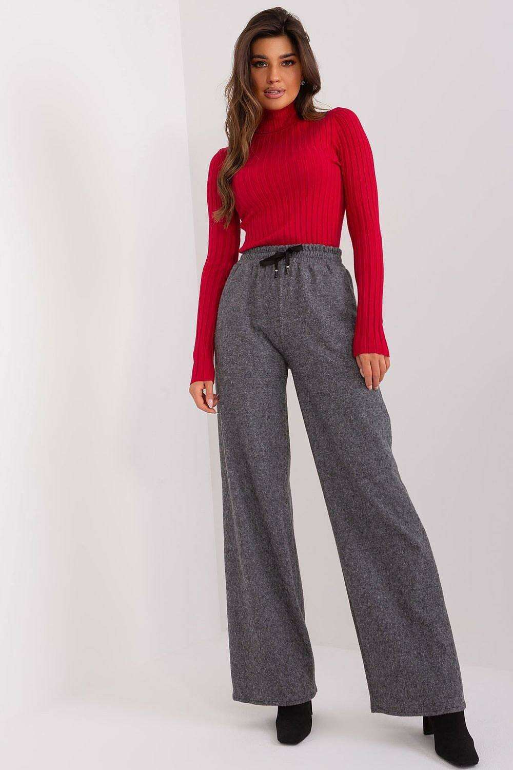 Chic Gray-Black High-Waisted Wide-Leg Pants for Modern Women