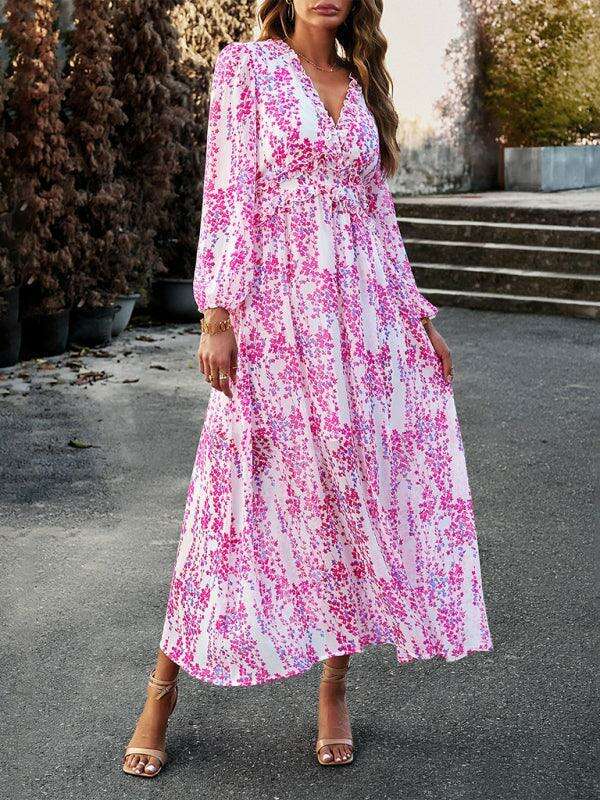Chic Long Sleeve V-Neck Chiffon Dress - A Stylish Autumn-Winter Must-Have