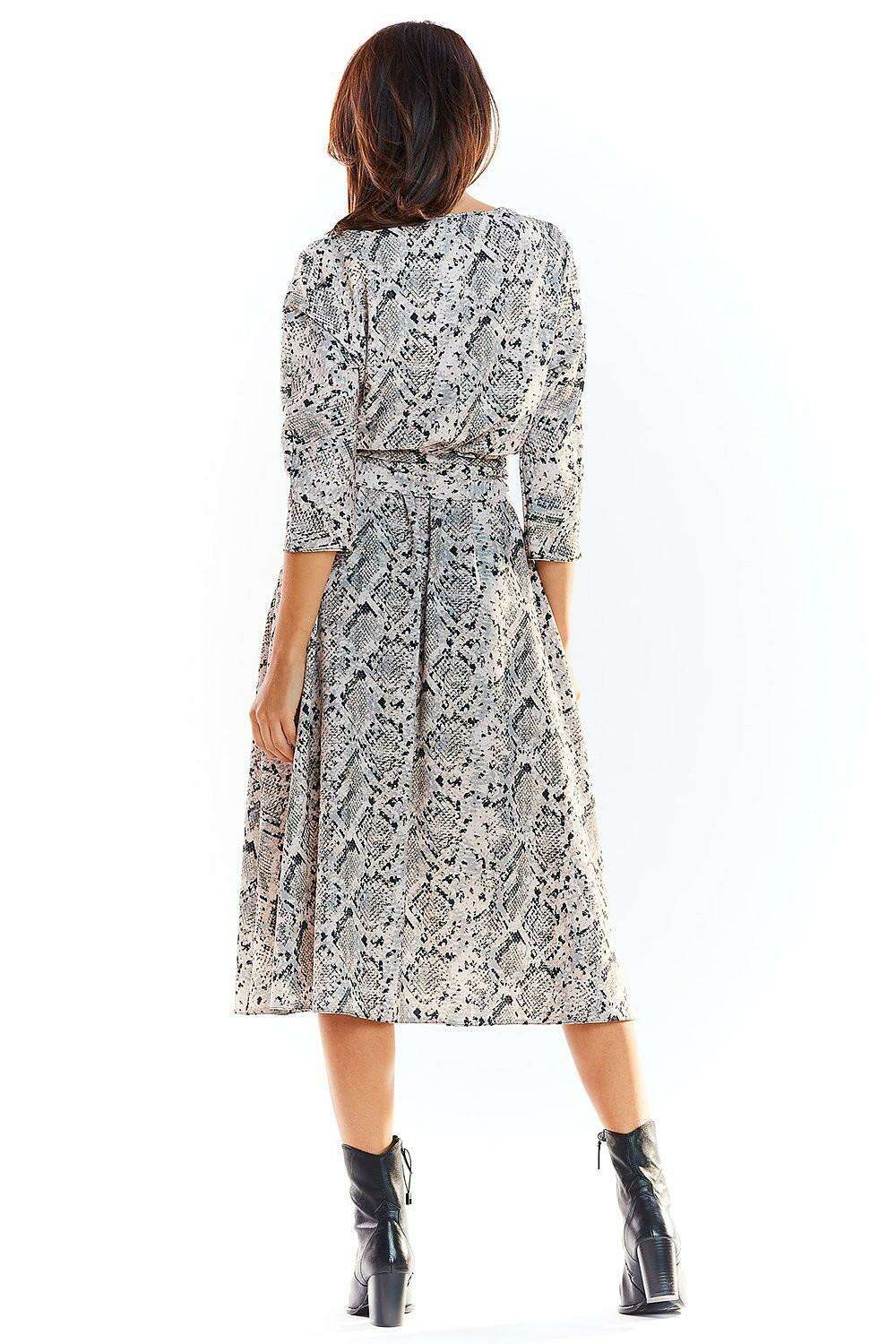 Chic Midi Dress with Stylish Prints and Complementary Waist Belt