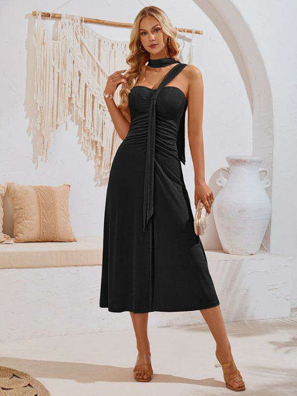 Chic Off-Shoulder Dress with Flowing Streamer Accents