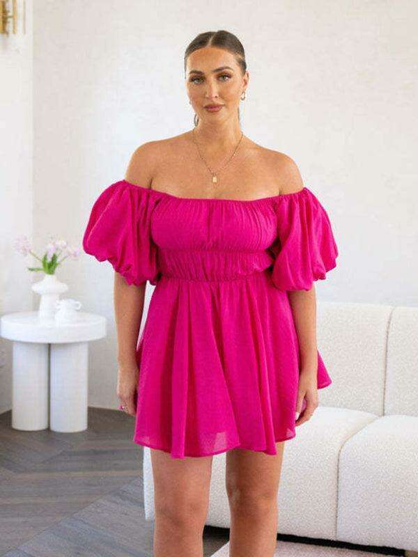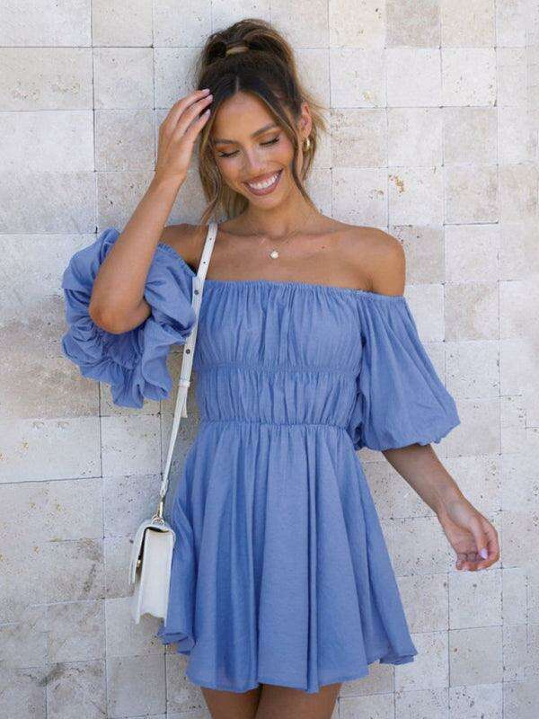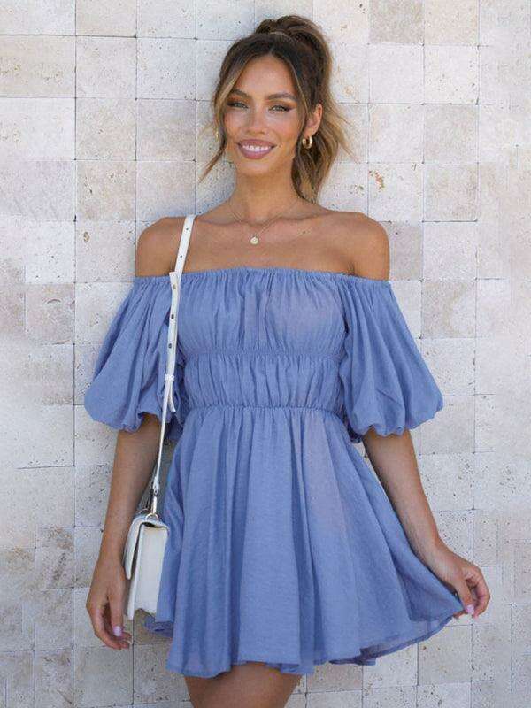 Chic One-Shoulder Boho Mini Dress with Comfortable Elastic Waistband