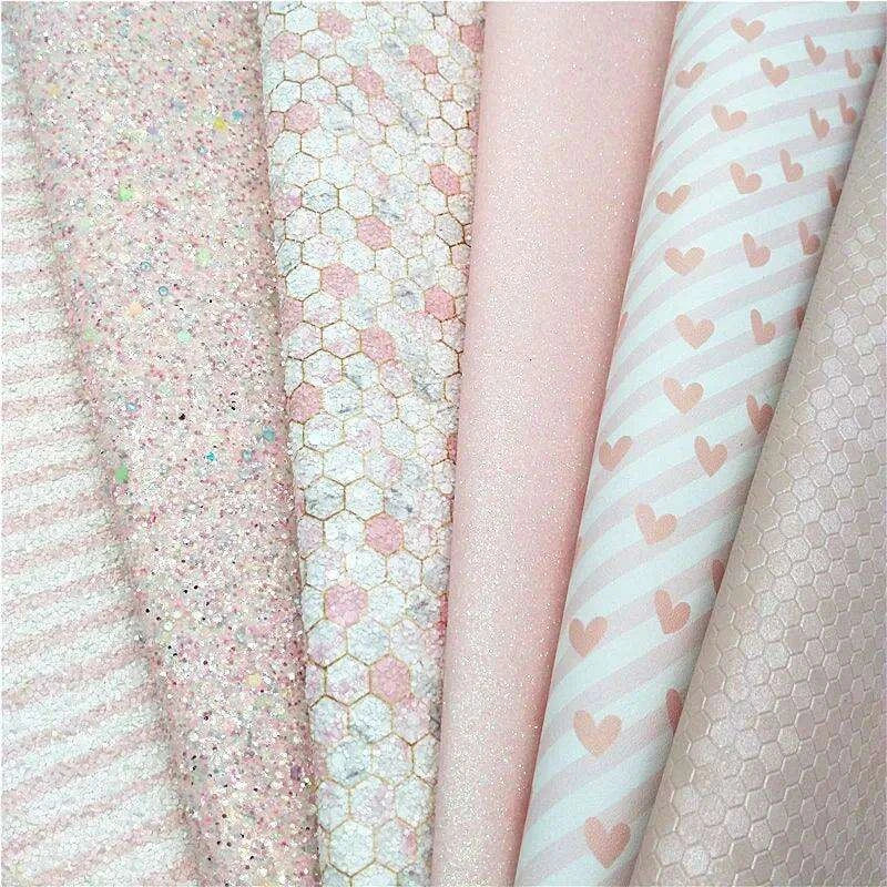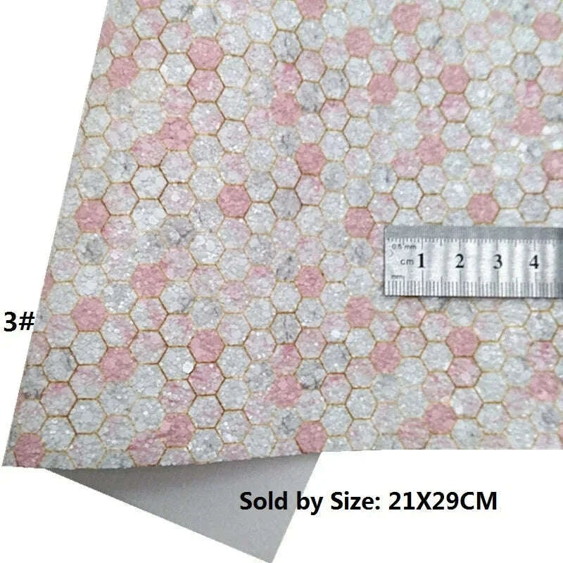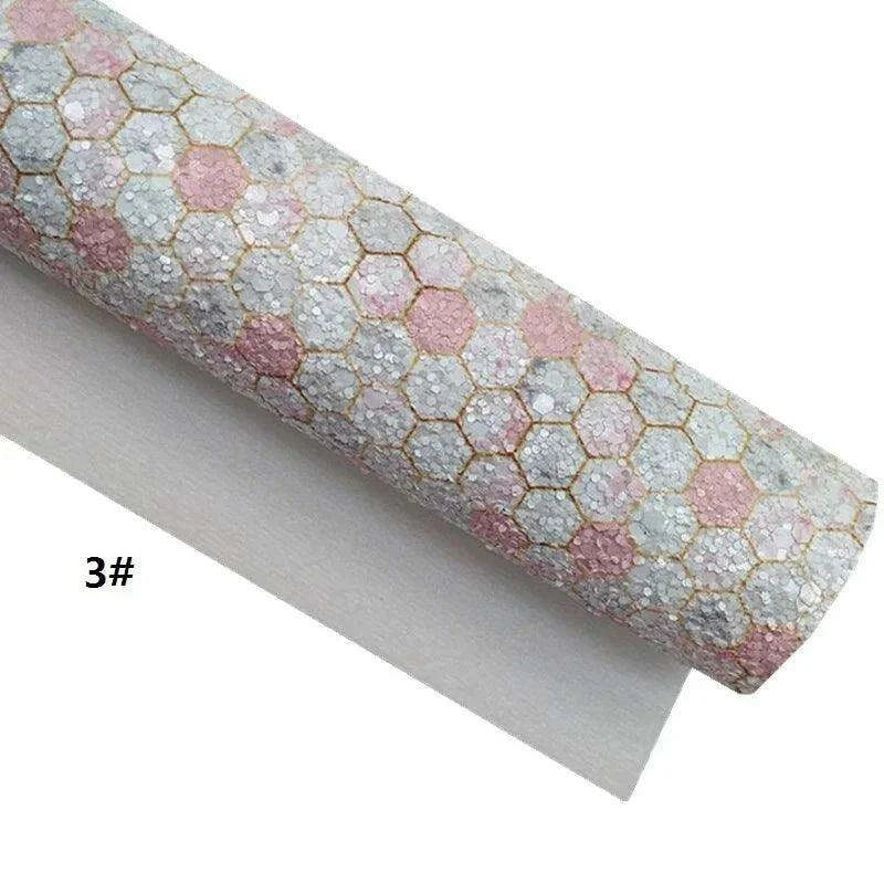 Feuilles de cuir à motif nid d'abeille et cœur rose scintillant pour l'artisanat de bricolage