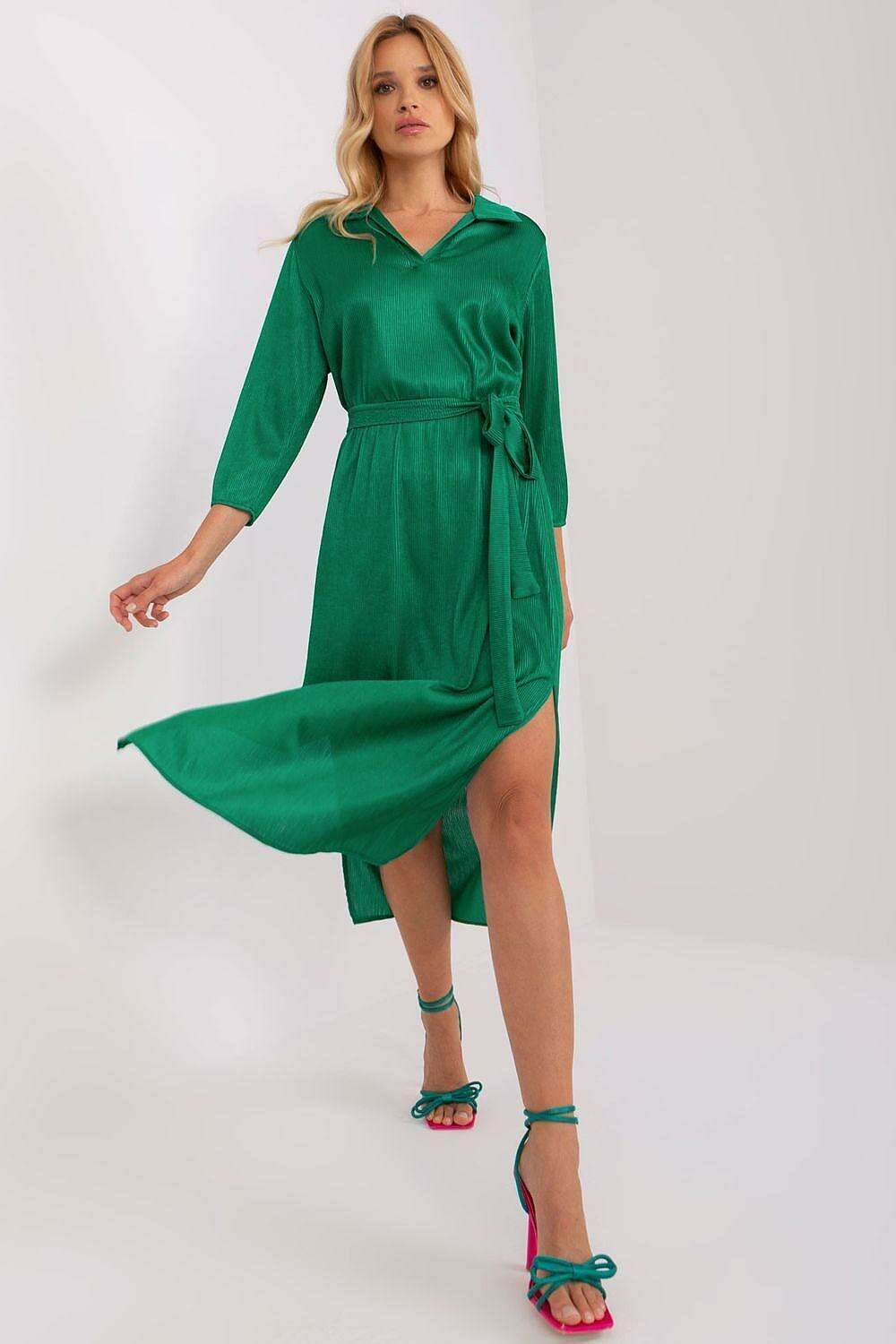 Chic Ribbed V-Neck Midi Dress with Adjustable Waist Detail