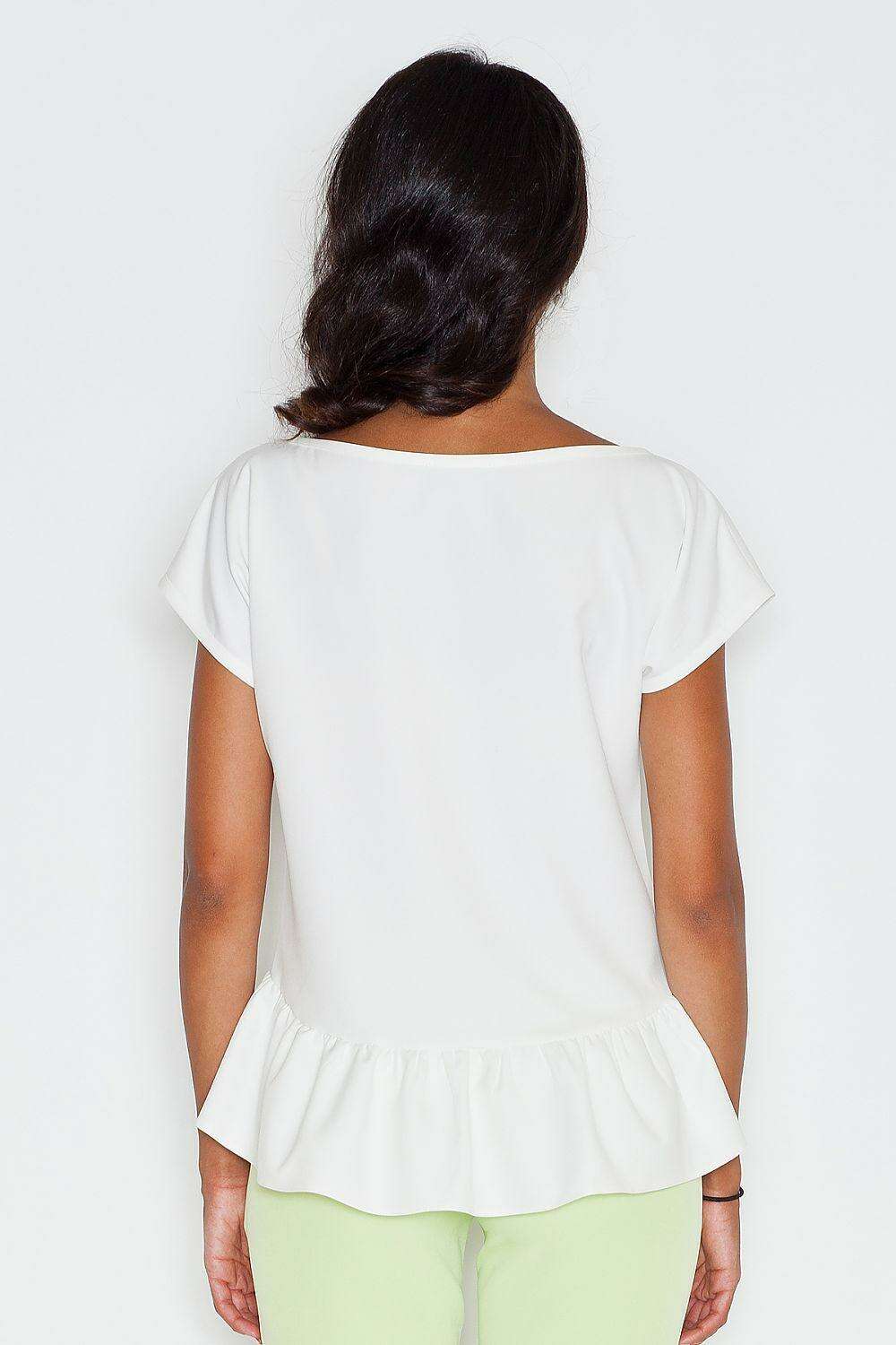 Elegant Ruffle Accented Short Sleeve Blouse - Women's Premium Top