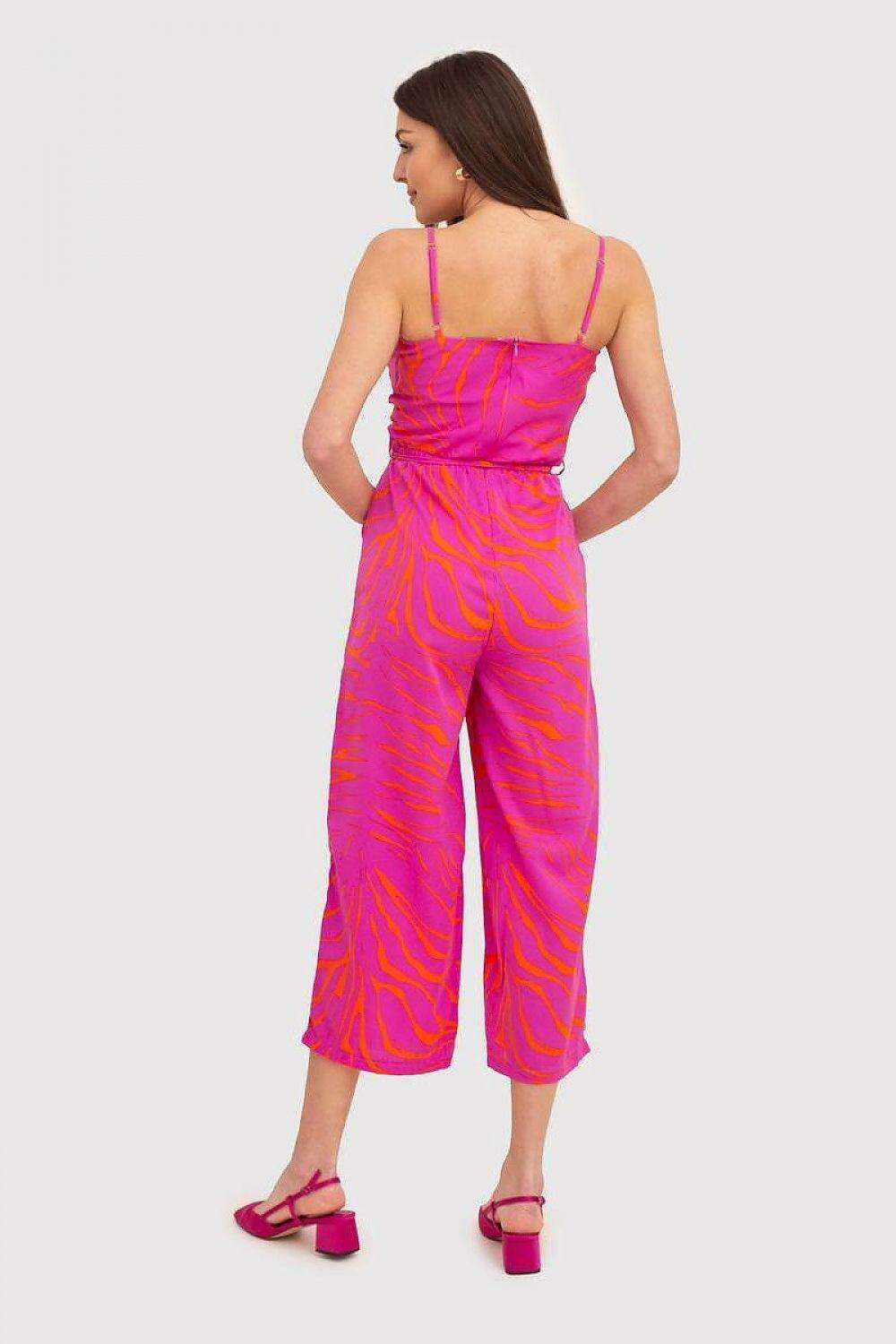 Introducing the Vibrant Pink and Orange Printed Strapless Jumpsuit with Stylish Envelope Top - a stunning and fashionable piece designed to elevate your wardrobe and ensure you stand out in any crowd!