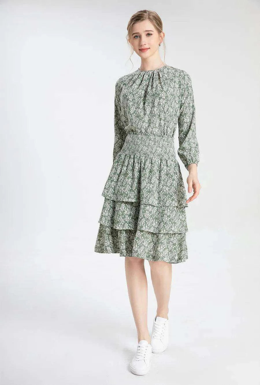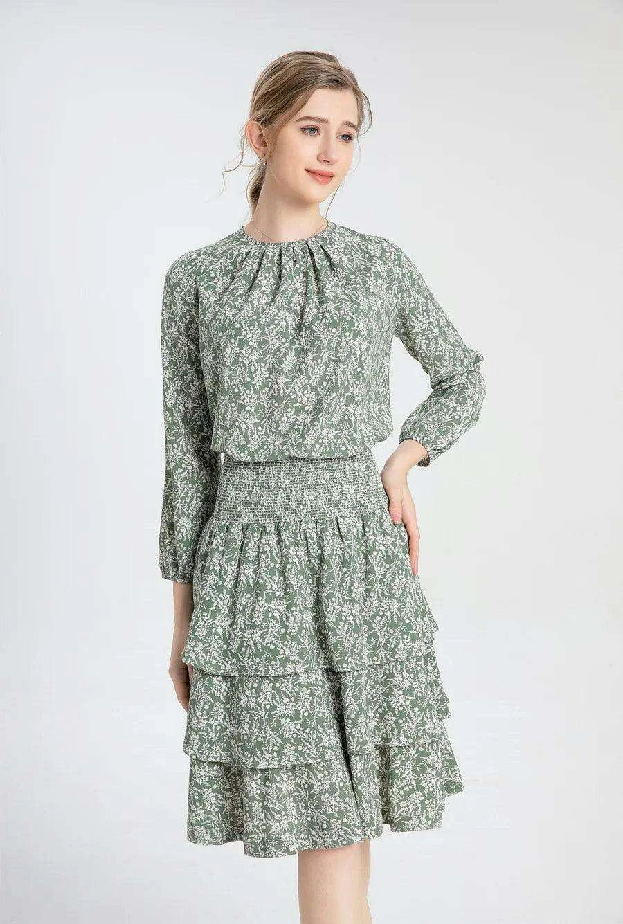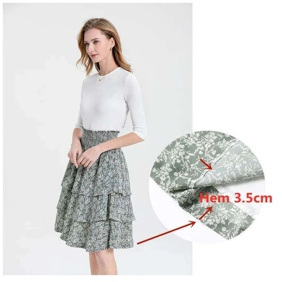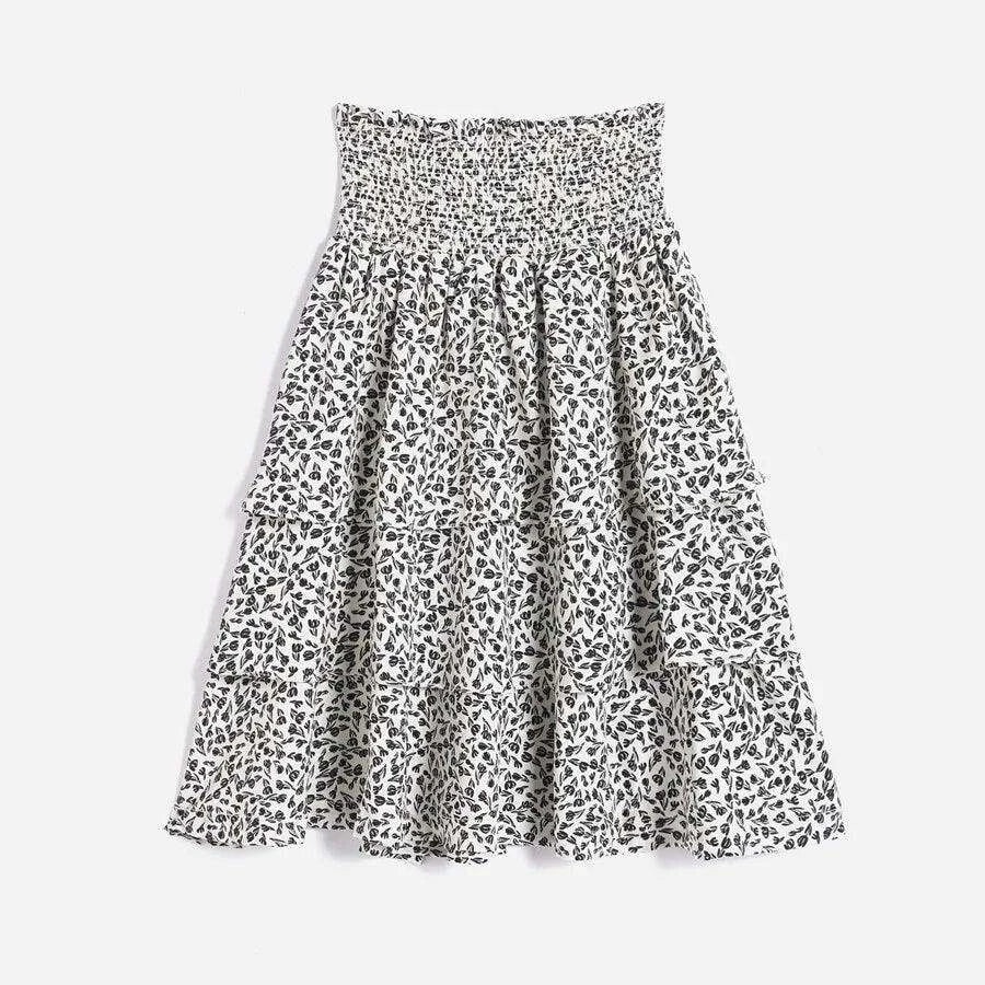 Summer Tops Smocking Skirt Sets Chiffon Fabric with High Elastic Waist