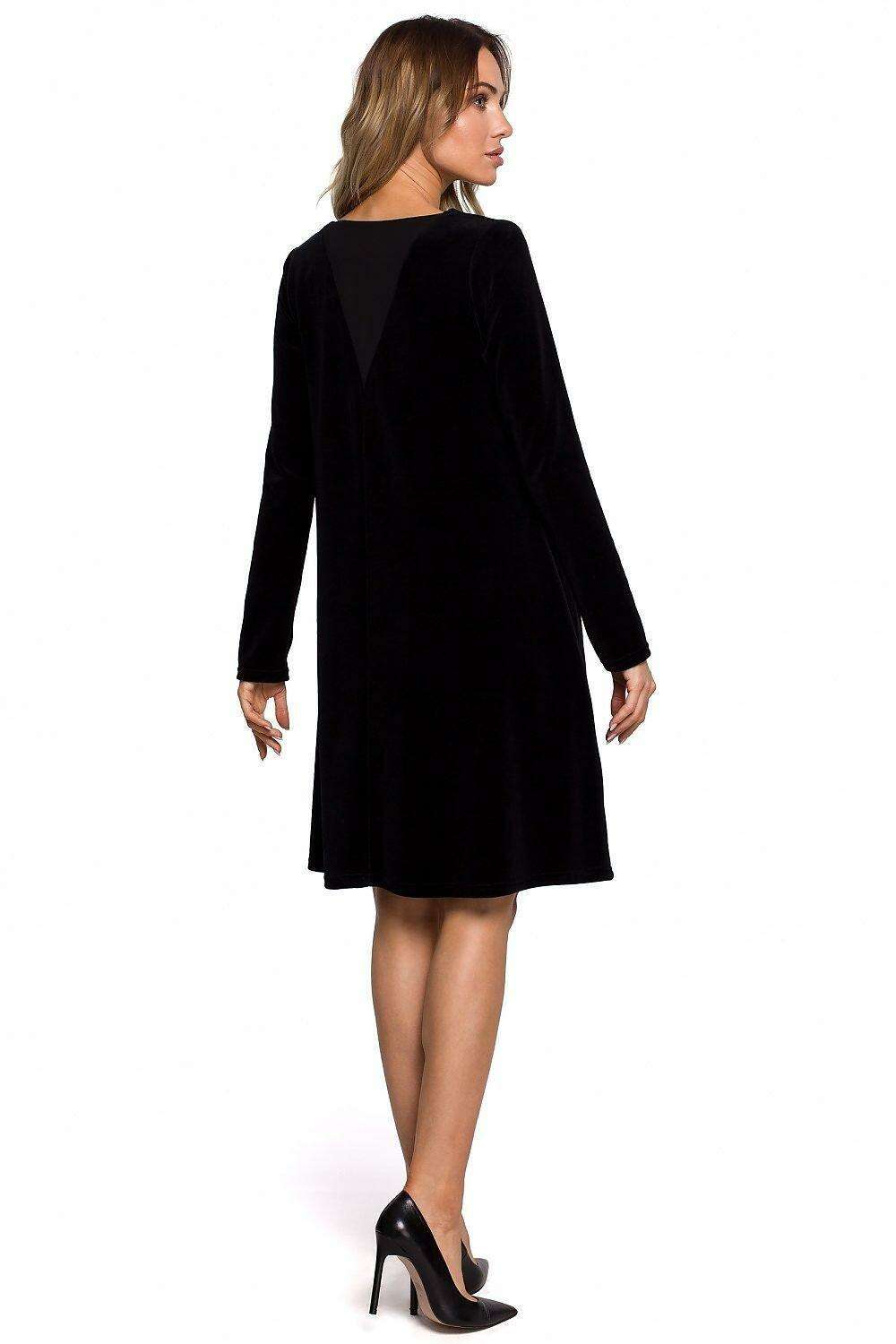 Chic Velour A-Line Dress with Unique Chiffon Back Inset