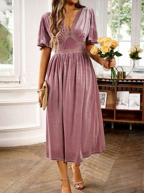 Chic Velvet V-Neck Dress with Short Sleeves: A Touch of Elegance