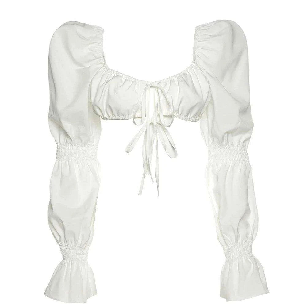 Chic Women's Puff Sleeve Crop Top with Lace-Up Square Neck for Fashion-Forward Street Style