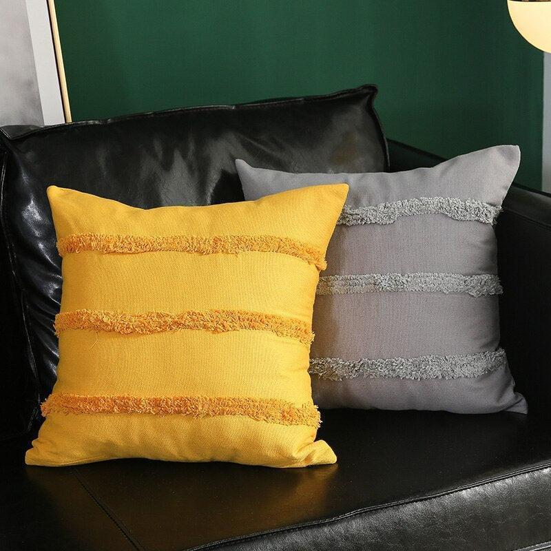 Enjoy hassle-free shipping within the USA with our E-packet service, complete with a tracking number for your convenience. Elevate your living space effortlessly with this chic Yellow and Grey Embroidered Cotton Pillow Cover.