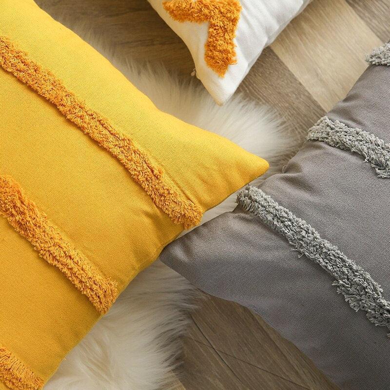 Chic Yellow and Grey Embroidered Cotton Pillow Cover with Tassel Accents Transform your living space with our exquisite Yellow and... En savoir plus En savoir plus
