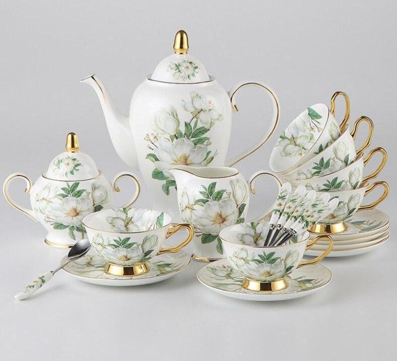 Elegant Chrysanthemum: Deluxe Bone China Tea Set with Gold Embellishments