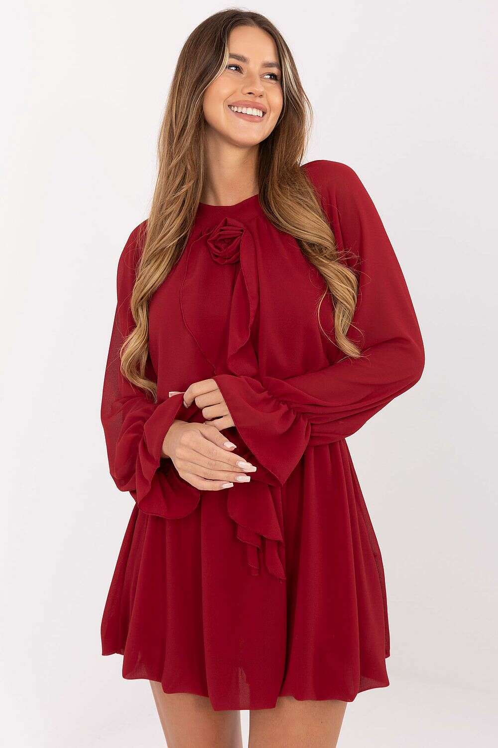• Long sleeves with delicate ruffles that add lightness and movement