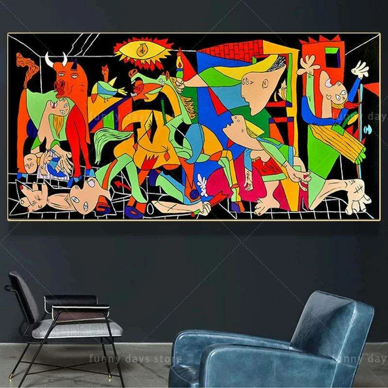 Vibrant Picasso-Style Large Abstract Canvas Art - Customizable Waterproof Decor Piece