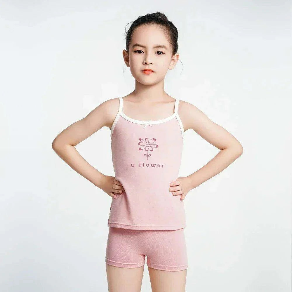 Cute Pink Cotton Sleeveless Summer Tank Top for Girls Aged 3-8 Years