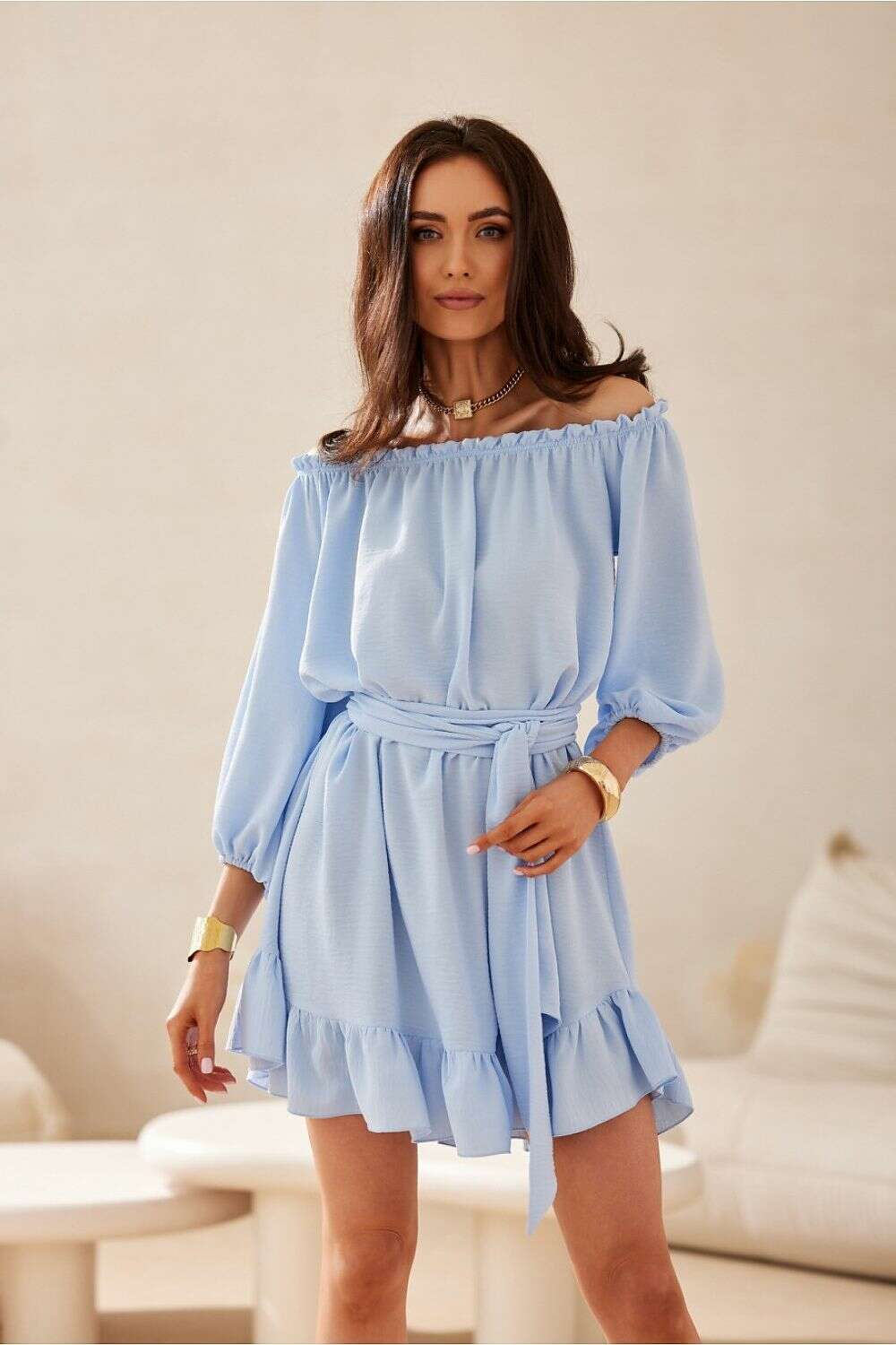 The Giulia dress is the quintessence of feminine lightness and summer charm. This flowing model above the knee delights with its exceptional Spanish neckline, which subtly highlights the shoulders and neck, adding a sensual charm to the whole. The puffy 3/4 length sleeves give the silhouette lightness and a romantic character, beautifully moving with every movement. Made of delicate, skin-friendly fabric, the Giulia dress gently and freely envelops the body. The bottom finished with a fancy flounce creates a subtle wave, which not only adds lightness but also cleverly masks minor imperfections of the silhouette, guaranteeing full comfort when worn. The model is equipped with a wide belt made of the same material, which allows you to adjust the fit to your figure and beautifully accentuate the waist. It can also be worn without a belt, in a loose version because Giulia is a dress that emphasizes not only shapes but above all feminine freedom and naturalness. It is an ideal proposition for summer days, both for everyday wear and for more special occasions. Paired with elegant sandals and jewelry, it will create a romantic, feminine outfit, and combined with espadrilles or flip-flops, it will be a perfect choice for a holiday stroll or a meeting with friends.